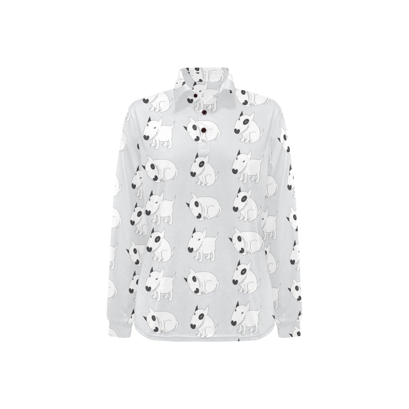 Bull Terrier Pattern Print Design 01 Women's Long Sleeve Polo Shirt