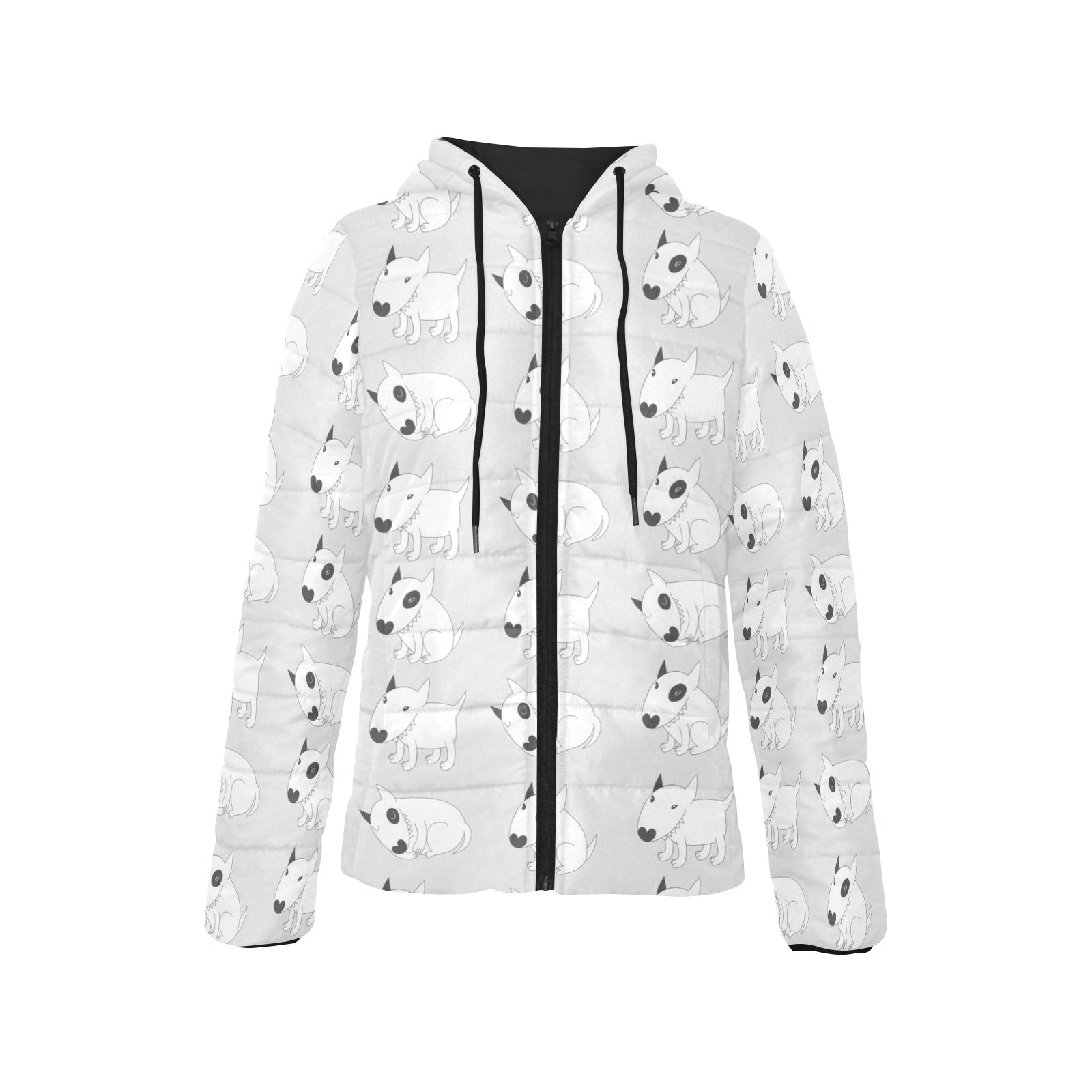Bull Terrier Pattern Print Design 01 Women's Padded Hooded Jacket