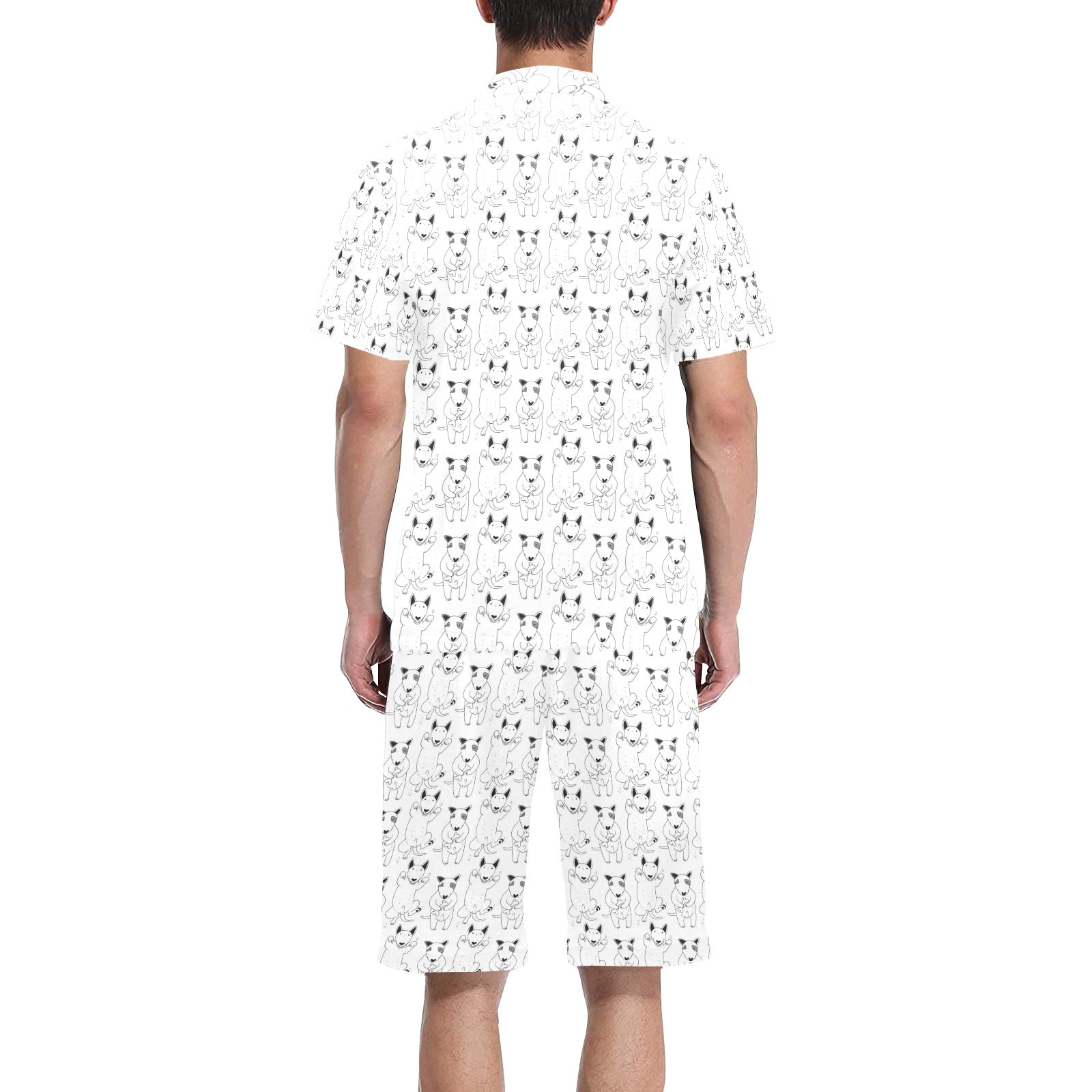 Bull Terrier Pattern Print Design 02 Men's V-Neck Short Pajama Set