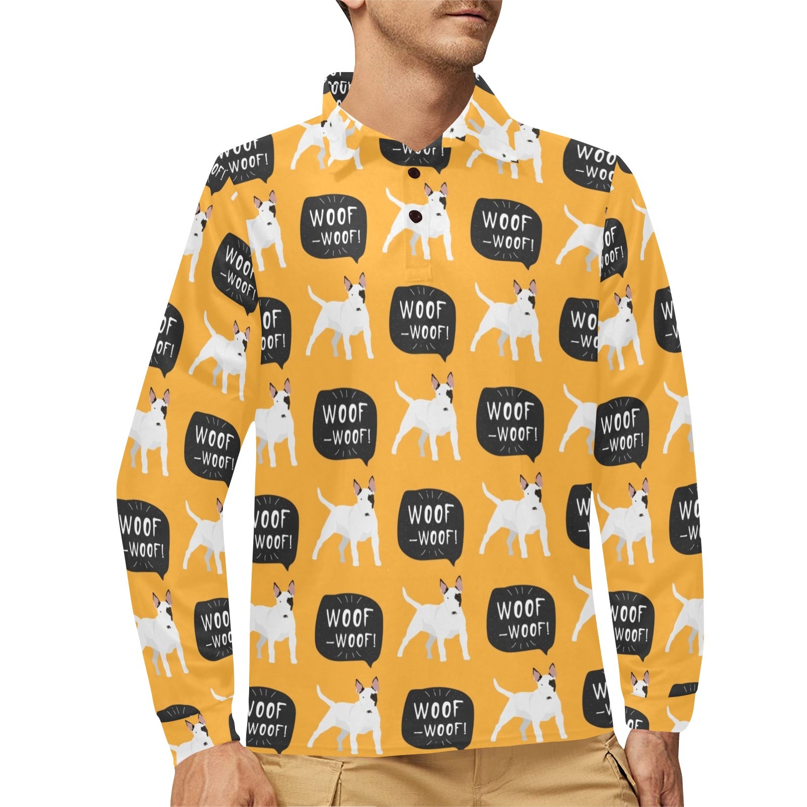 Bull Terrier Pattern Print Design 03 Men's Long Sleeve Polo Shirt