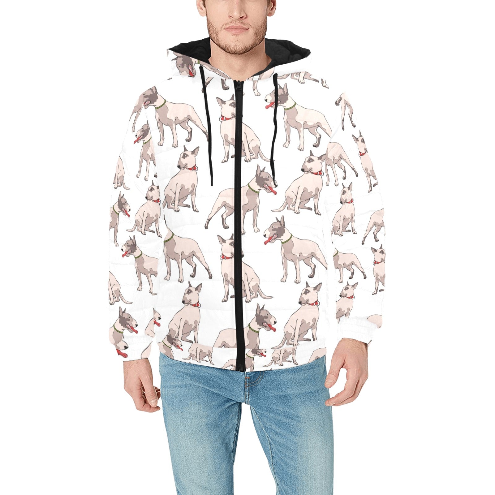 Bull Terrier Pattern Print Design 04 Men's Padded Hooded Jacket