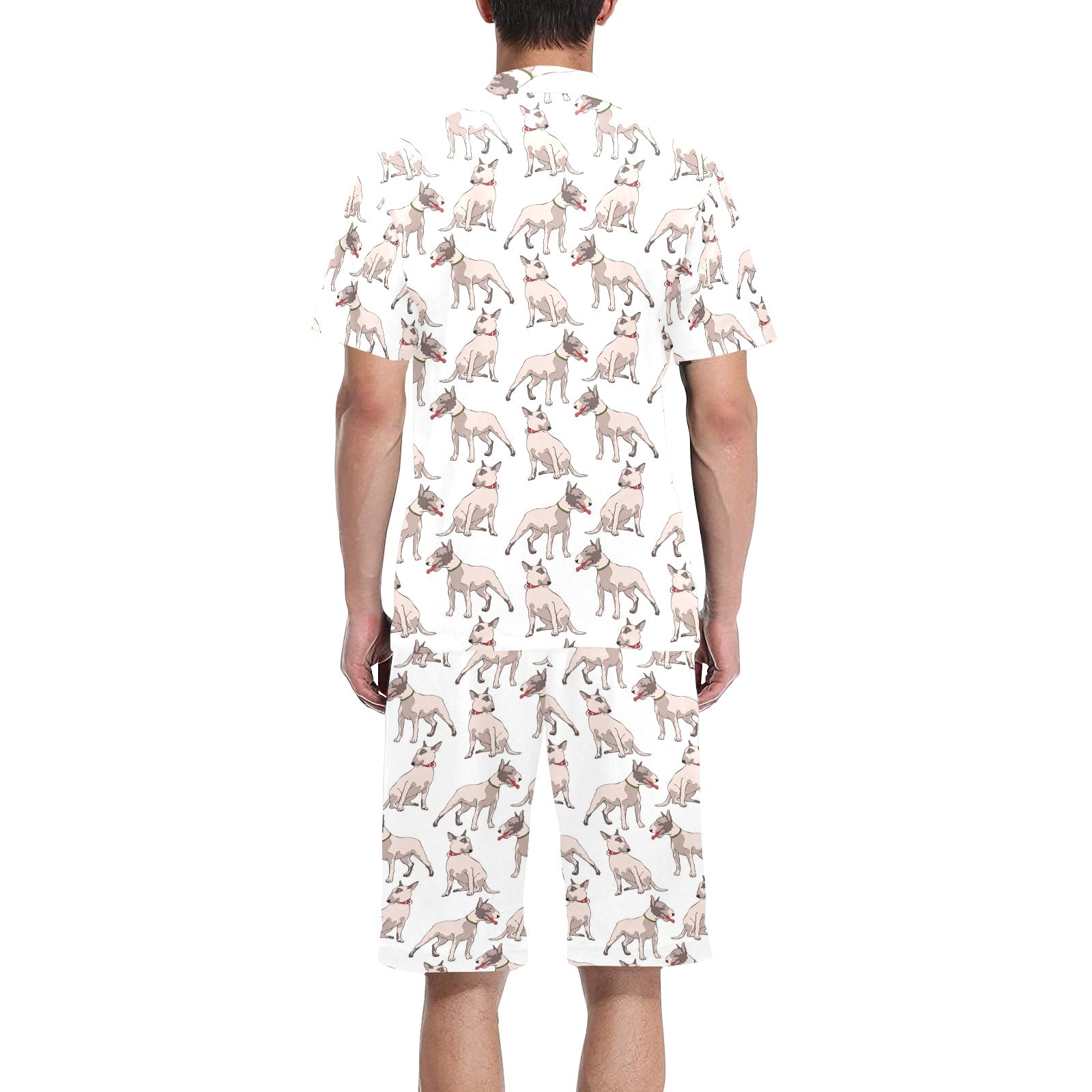 Bull Terrier Pattern Print Design 04 Men's V-Neck Short Pajama Set
