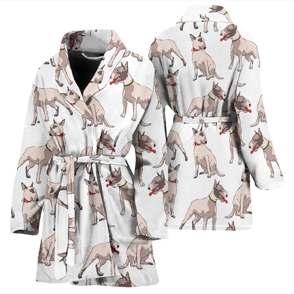 Bull Terrier Pattern Print Design 04 Women's Bathrobe