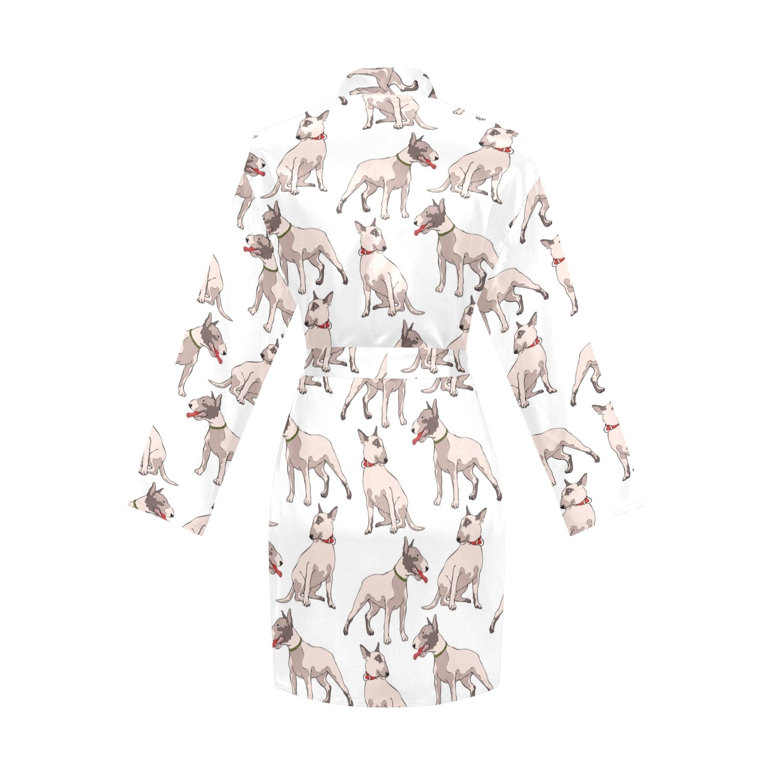 Bull Terrier Pattern Print Design 04 Women's Long Sleeve Belted Night Robe