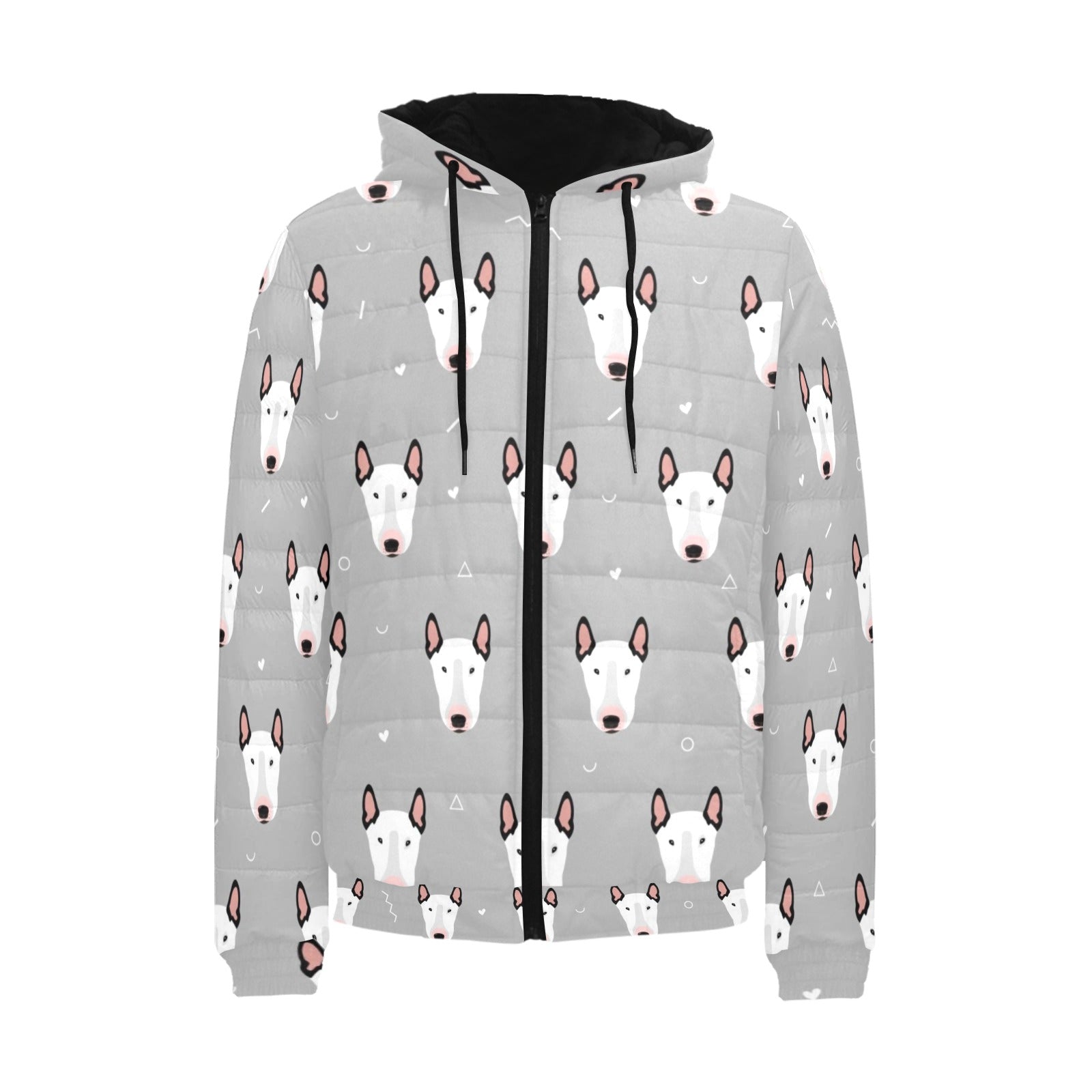 Bull Terrier Pattern Print Design 05 Men's Padded Hooded Jacket