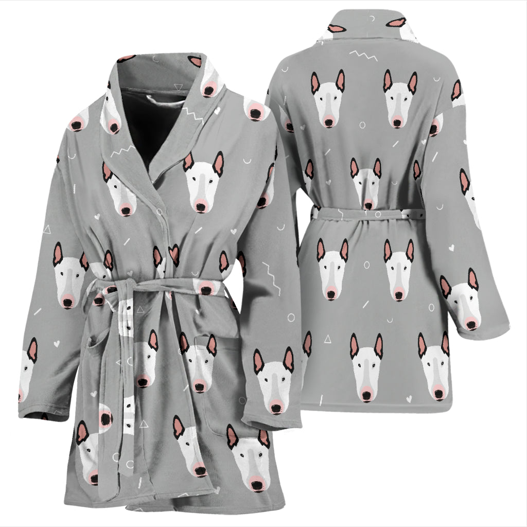 Bull Terrier Pattern Print Design 05 Women's Bathrobe