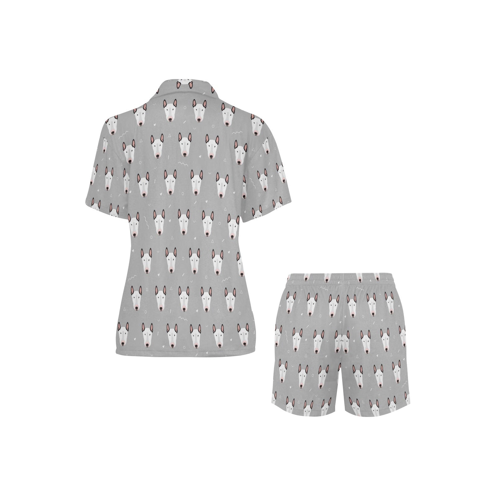 Bull Terrier Pattern Print Design 05 Women's V-Neck Short Pajama Set