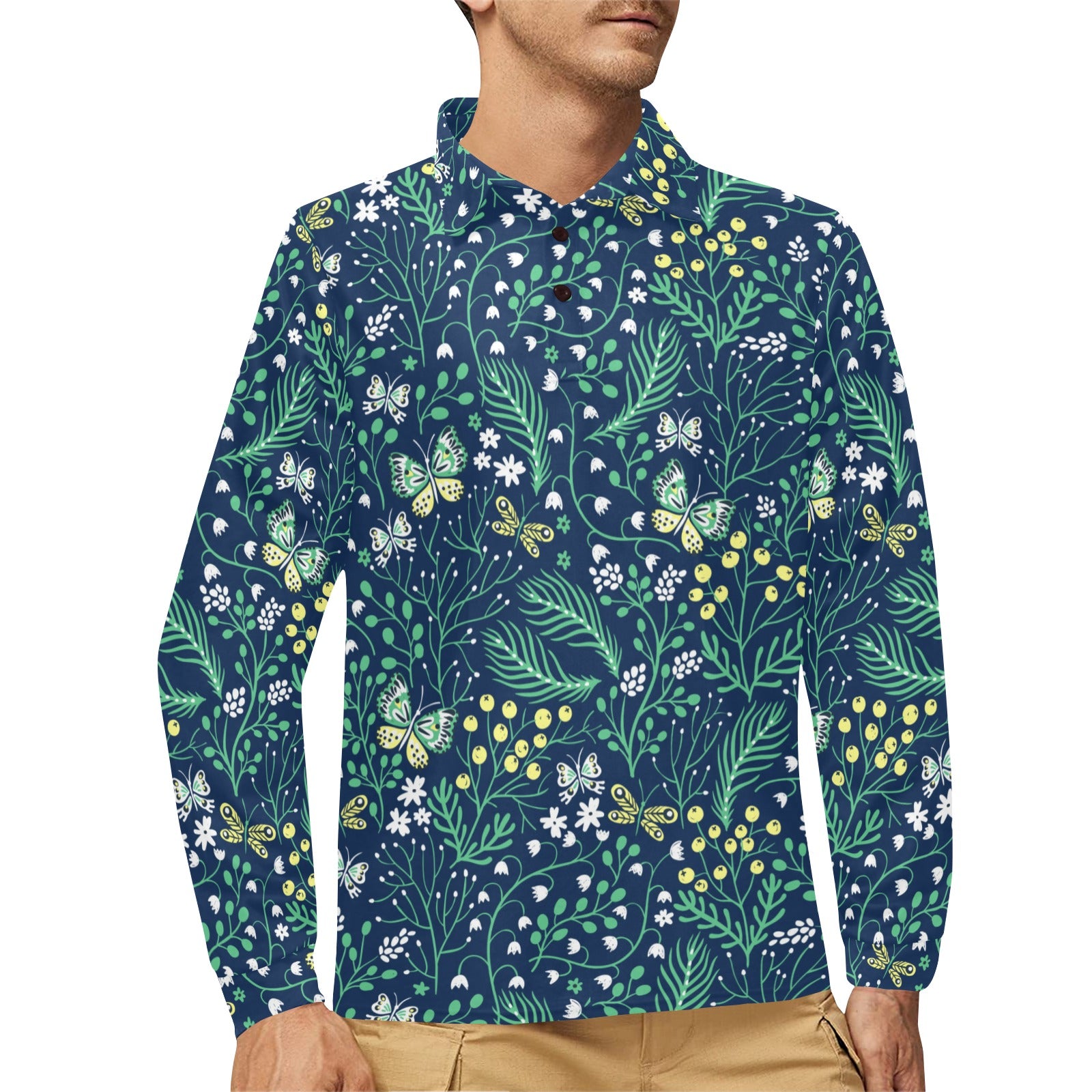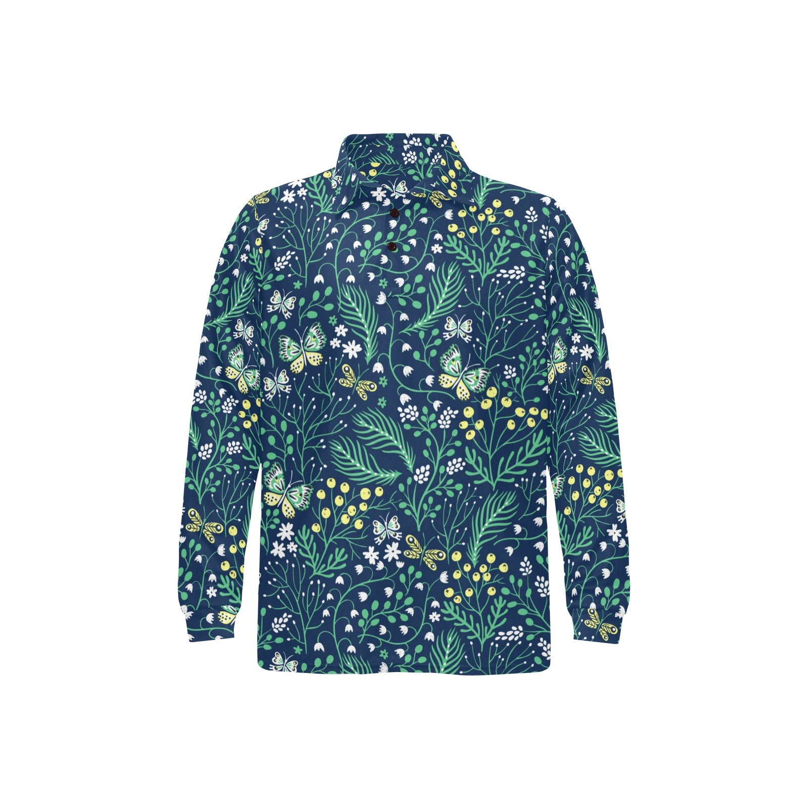 butterfly leaves pattern Men's Long Sleeve Polo Shirt