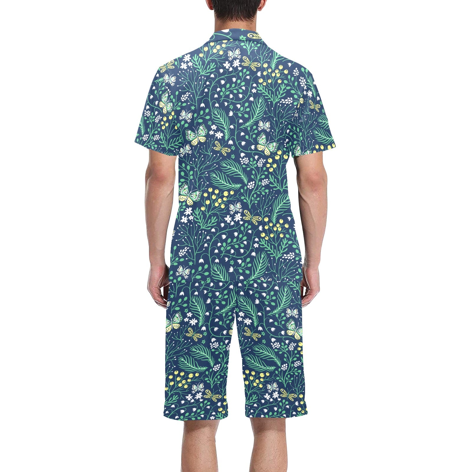 butterfly leaves pattern Men's V-Neck Short Pajama Set