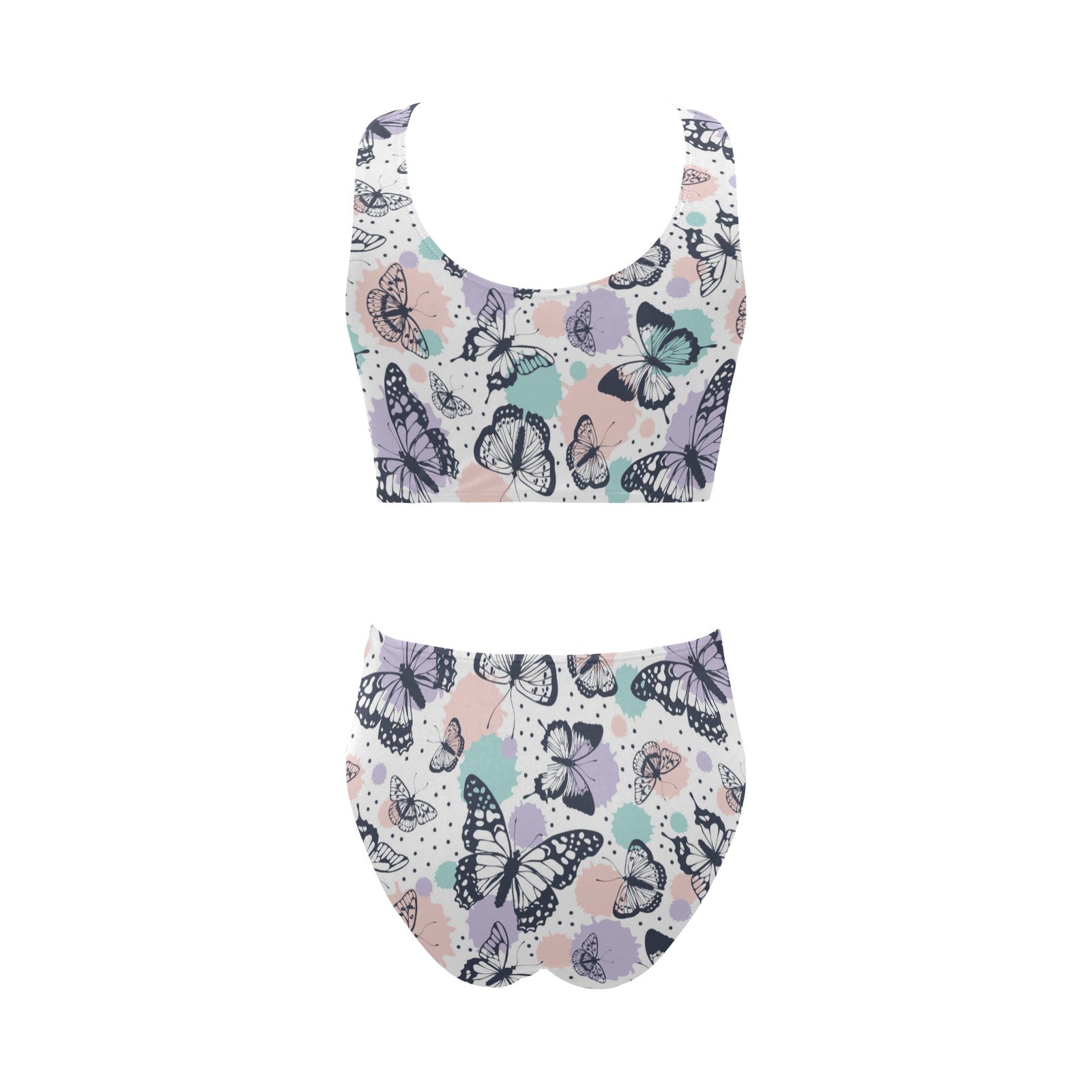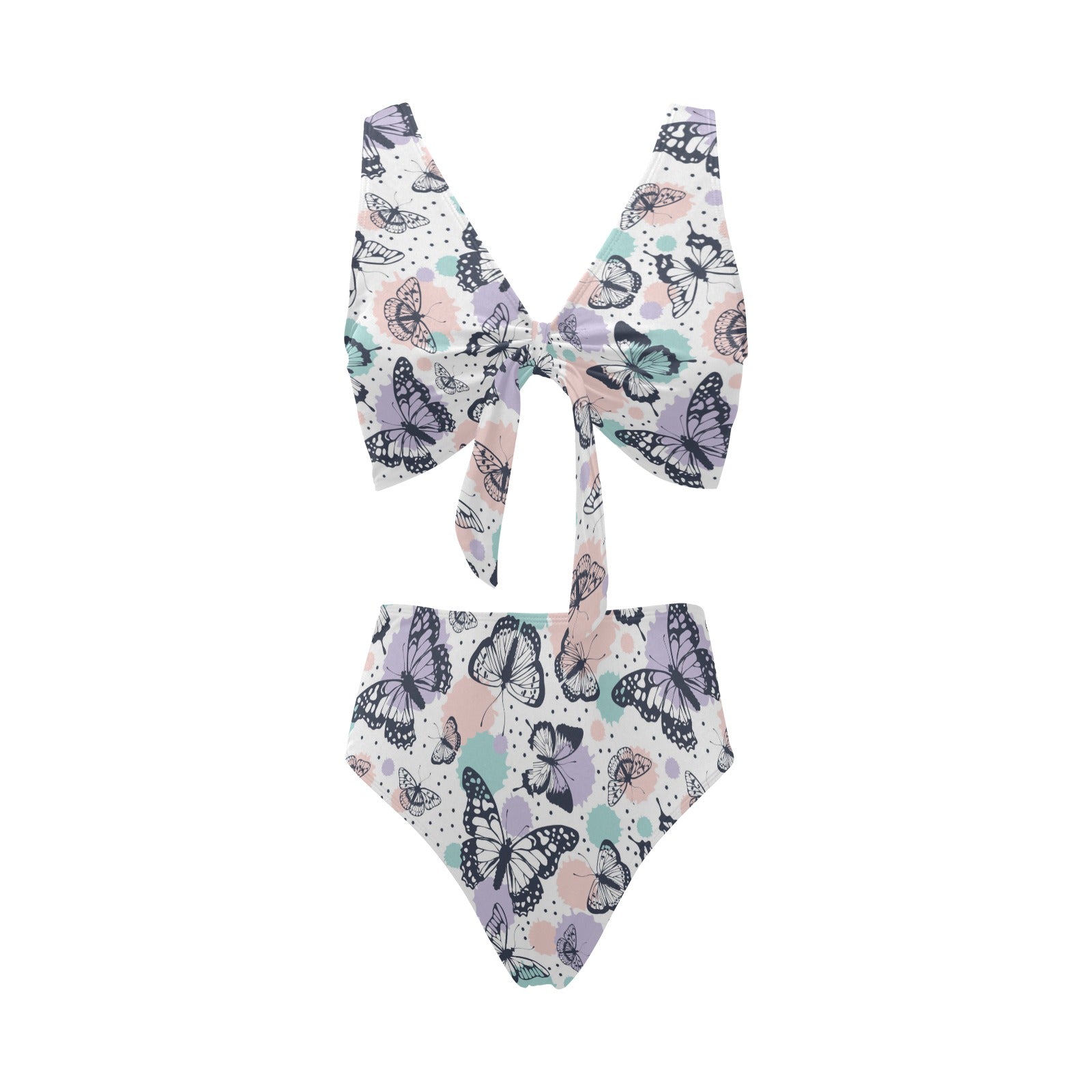 Butterfly pattern Chest Bowknot High Waisted Bikini Swimsuit
