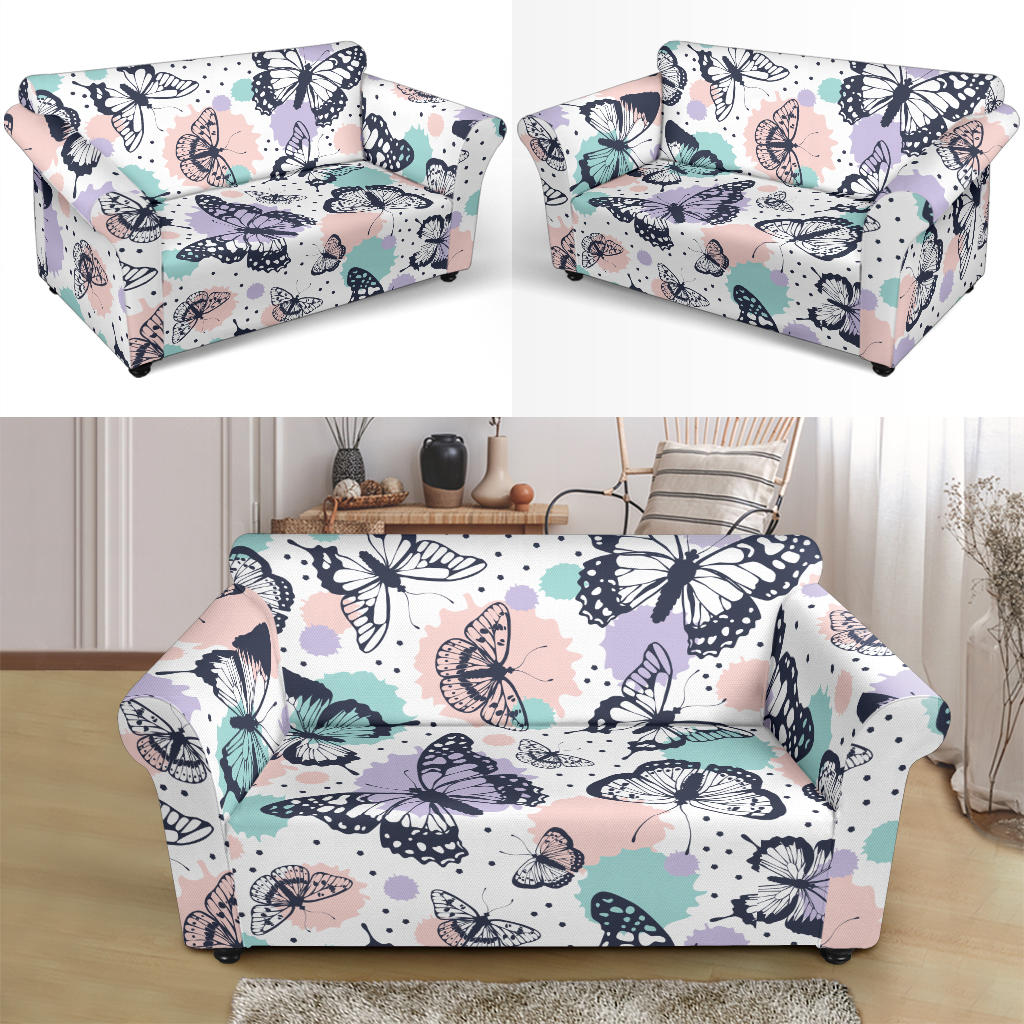 Butterfly pattern Loveseat Sofa Slipcover is a uniqued design and limited item. It made to order, hand printed, and sewn with love in our factory.