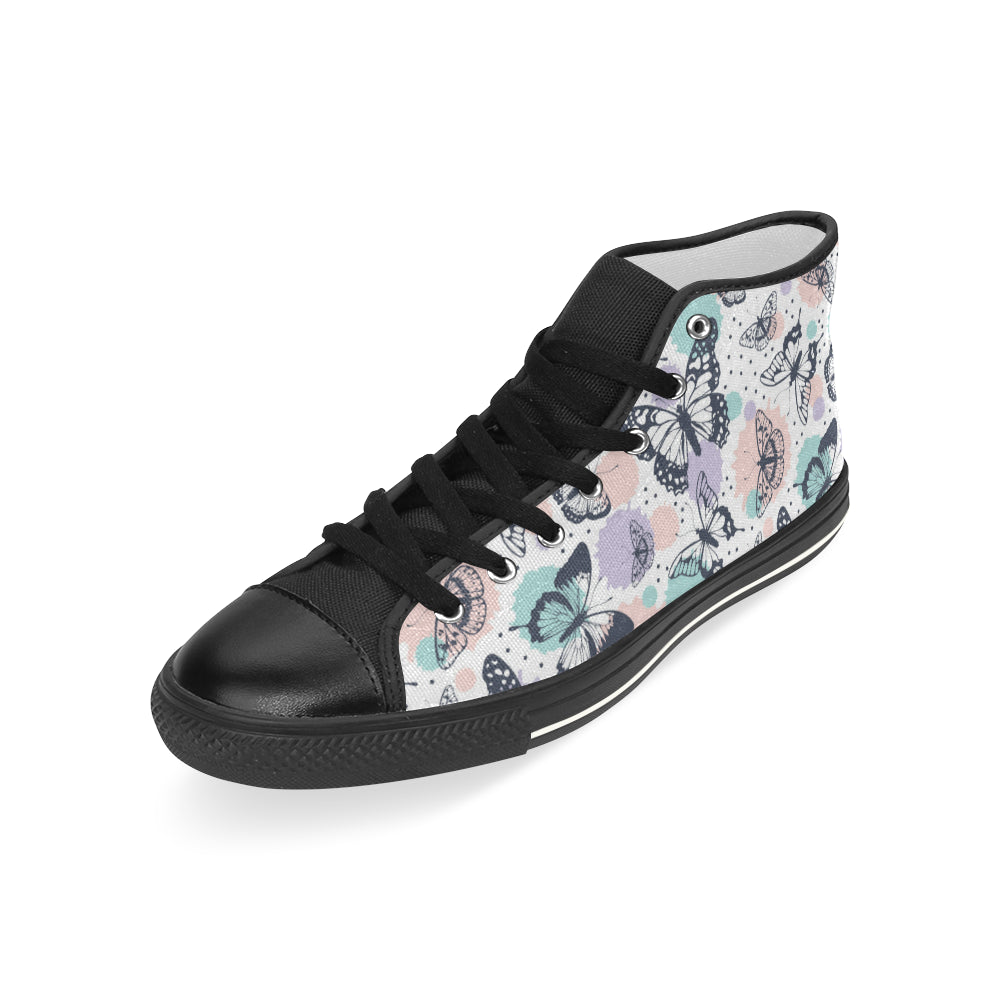 Butterfly pattern Men's High Top Canvas Shoes Black