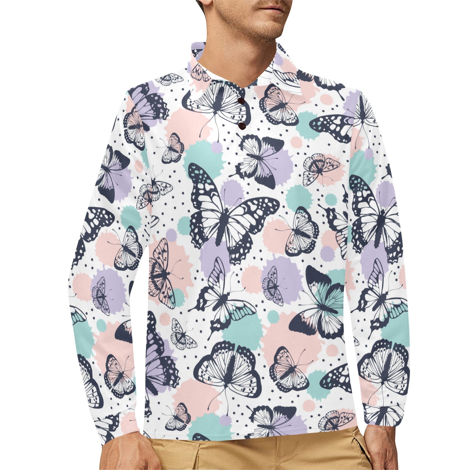Butterfly pattern Men's Long Sleeve Polo Shirt