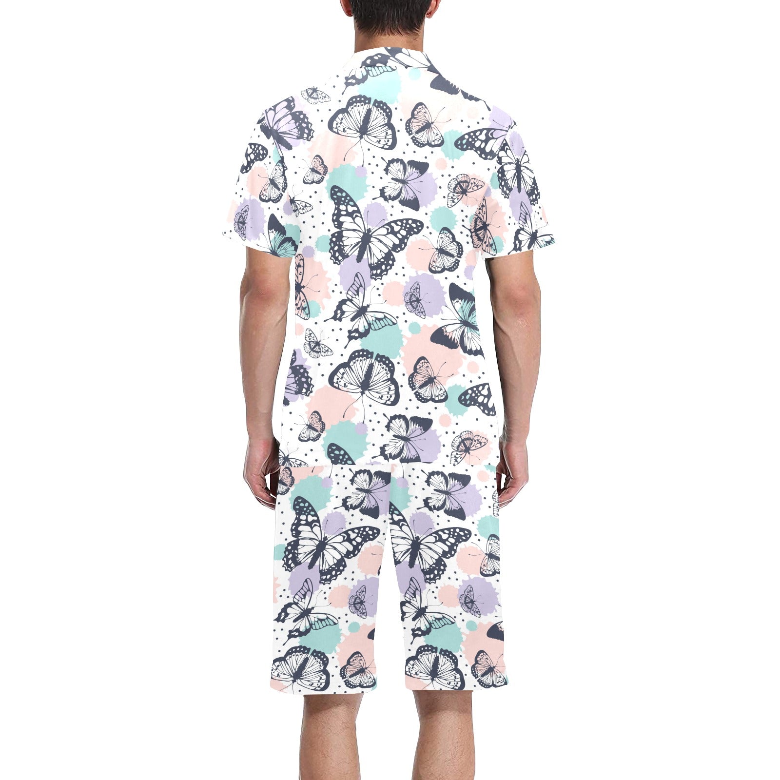Butterfly pattern Men's V-Neck Short Pajama Set