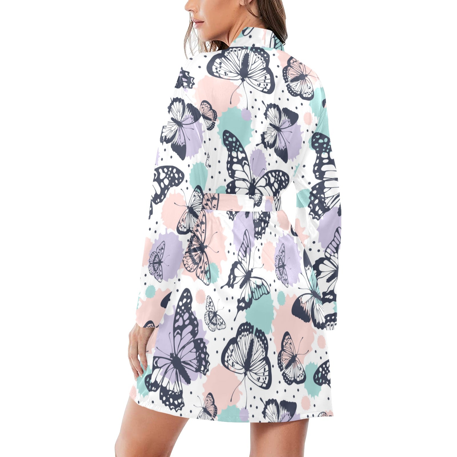 Butterfly pattern Women's Long Sleeve Belted Night Robe