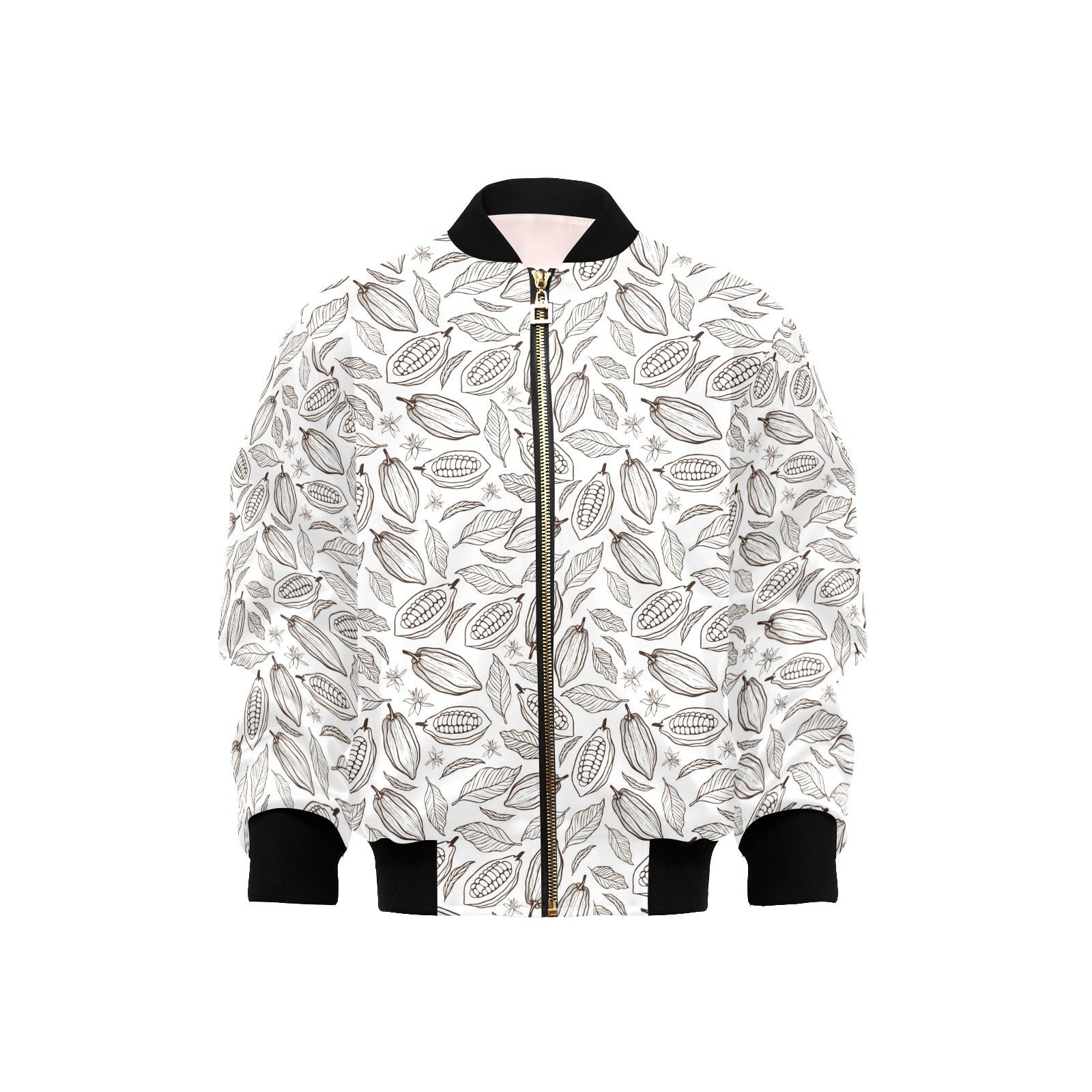 cacao beans leaves pattern Kids' Boys' Girls' Bomber Jacket