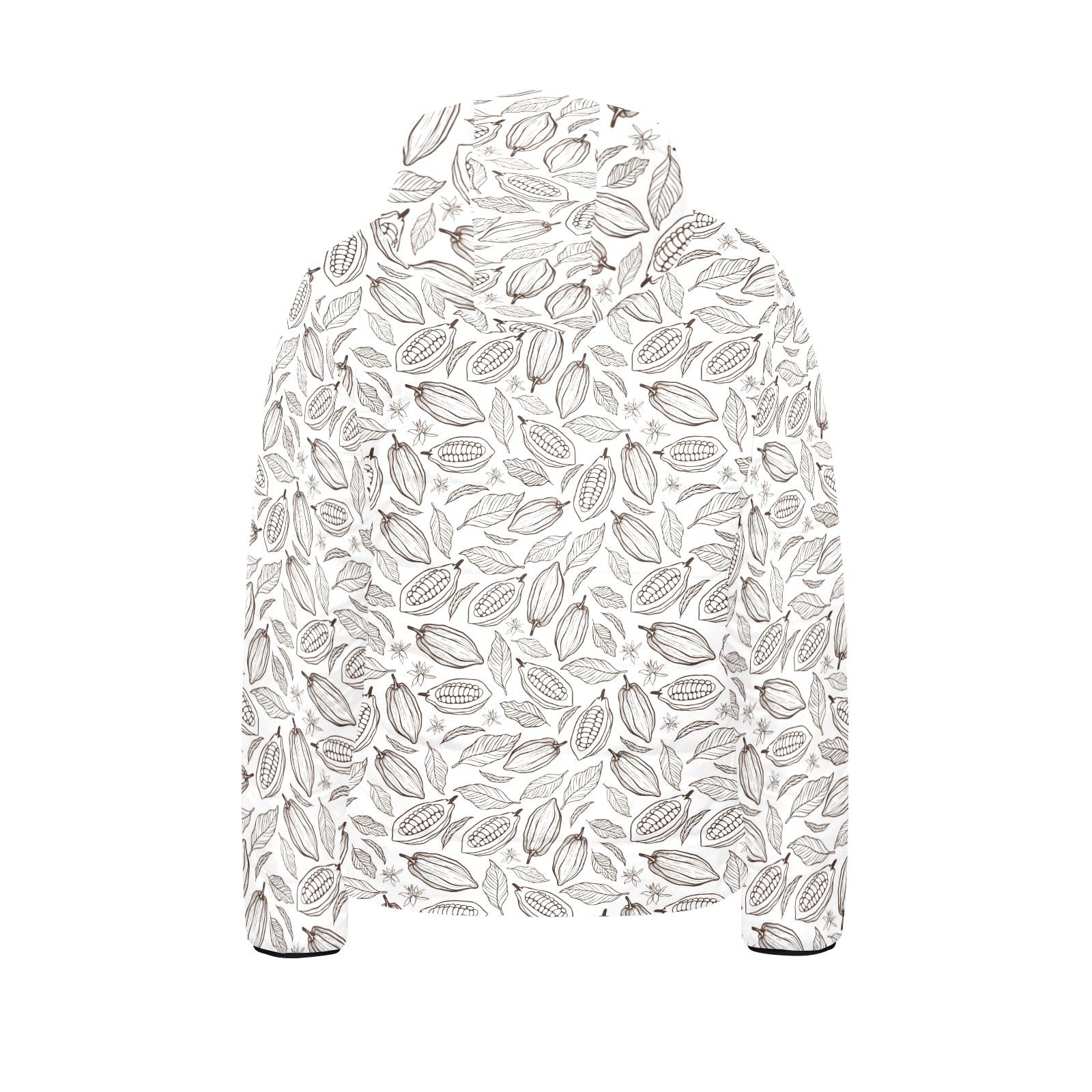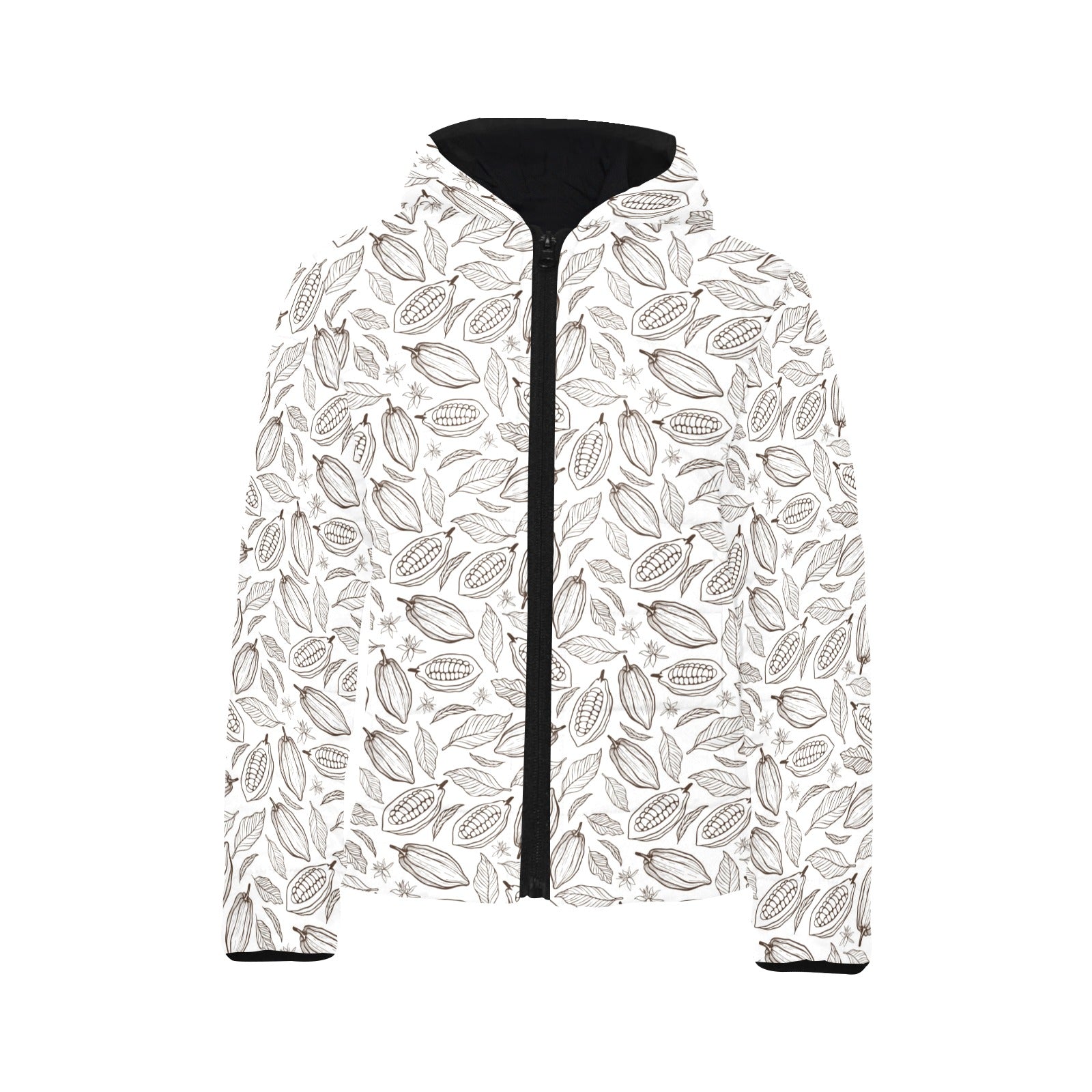 cacao beans leaves pattern Kids' Boys' Girls' Padded Hooded Jacket