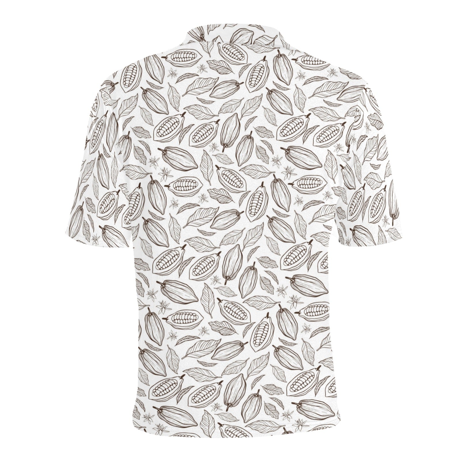 cacao beans leaves pattern Men's All Over Print Polo Shirt