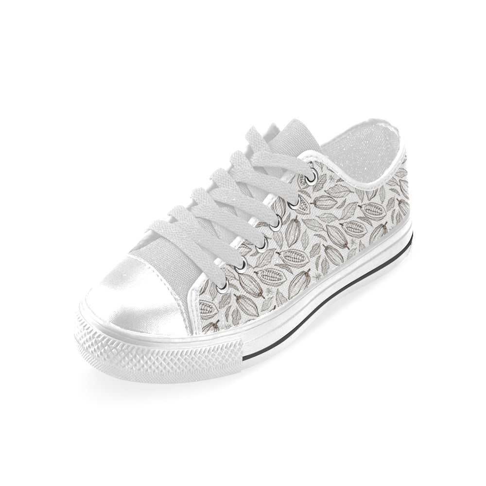 cacao beans leaves pattern Men's Low Top Shoes White