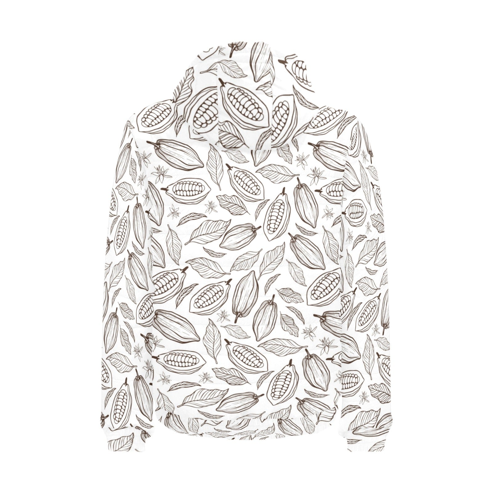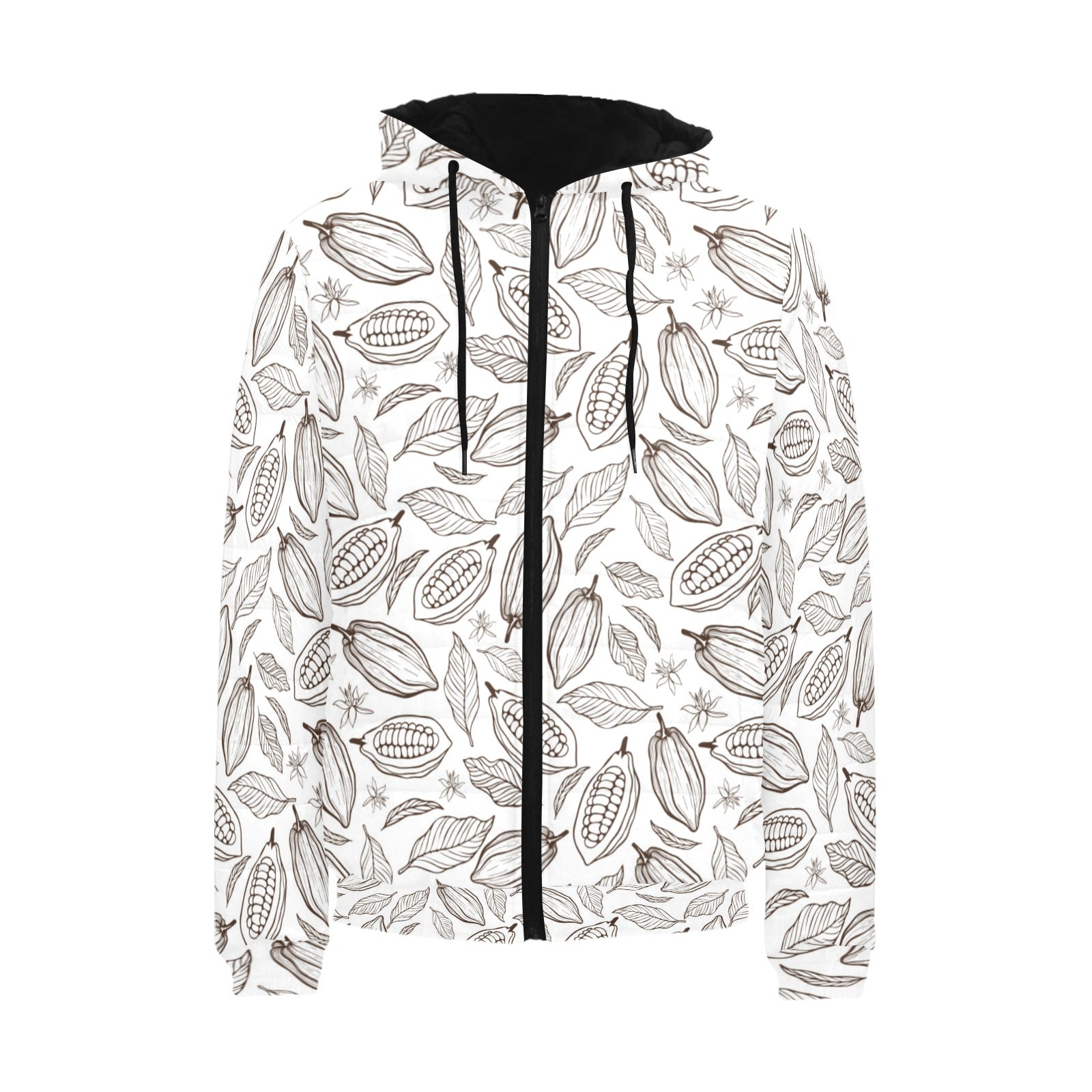 cacao beans leaves pattern Men's Padded Hooded Jacket