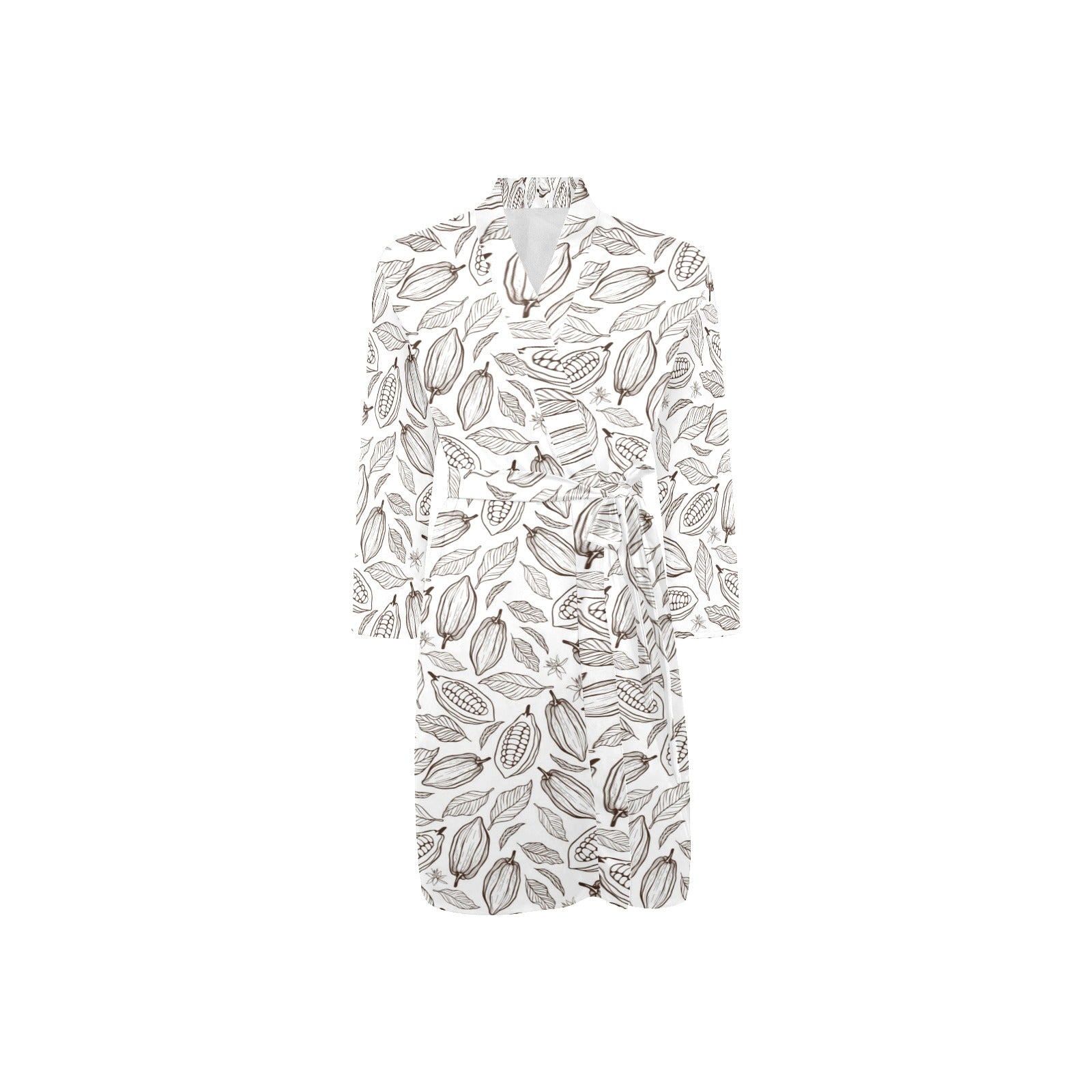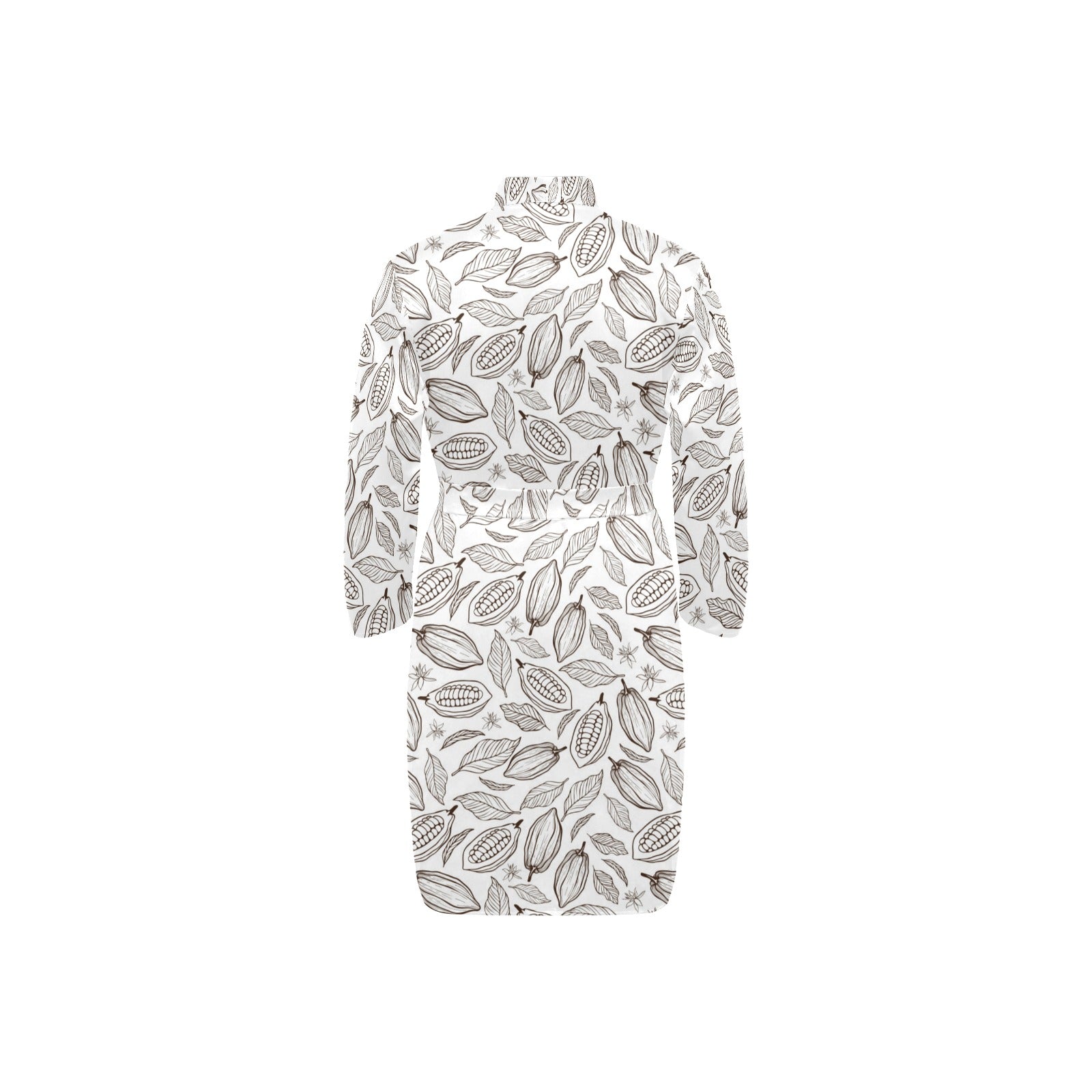 cacao beans leaves pattern Men's Long Sleeve Belted Night Robe