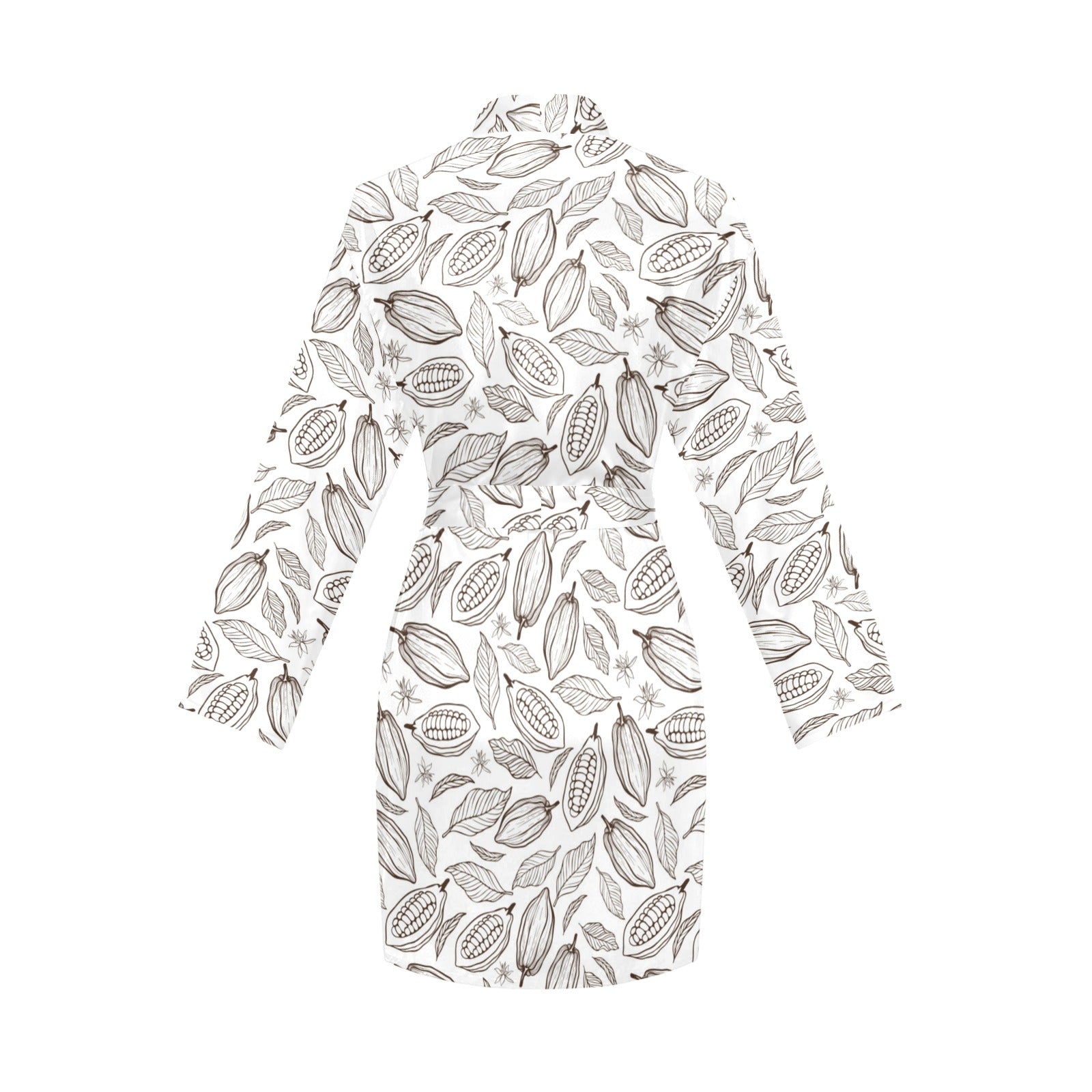 cacao beans leaves pattern Women's Long Sleeve Belted Night Robe