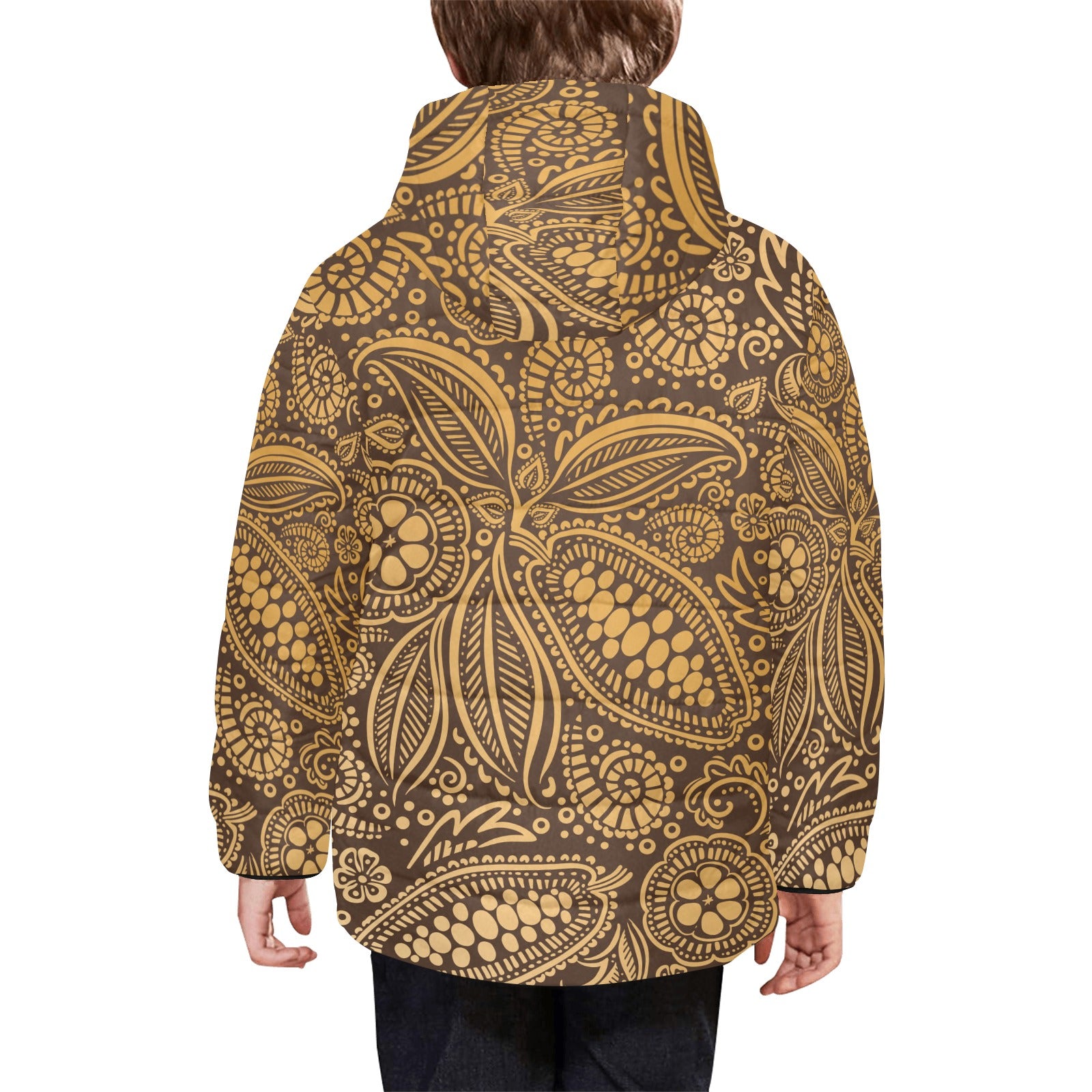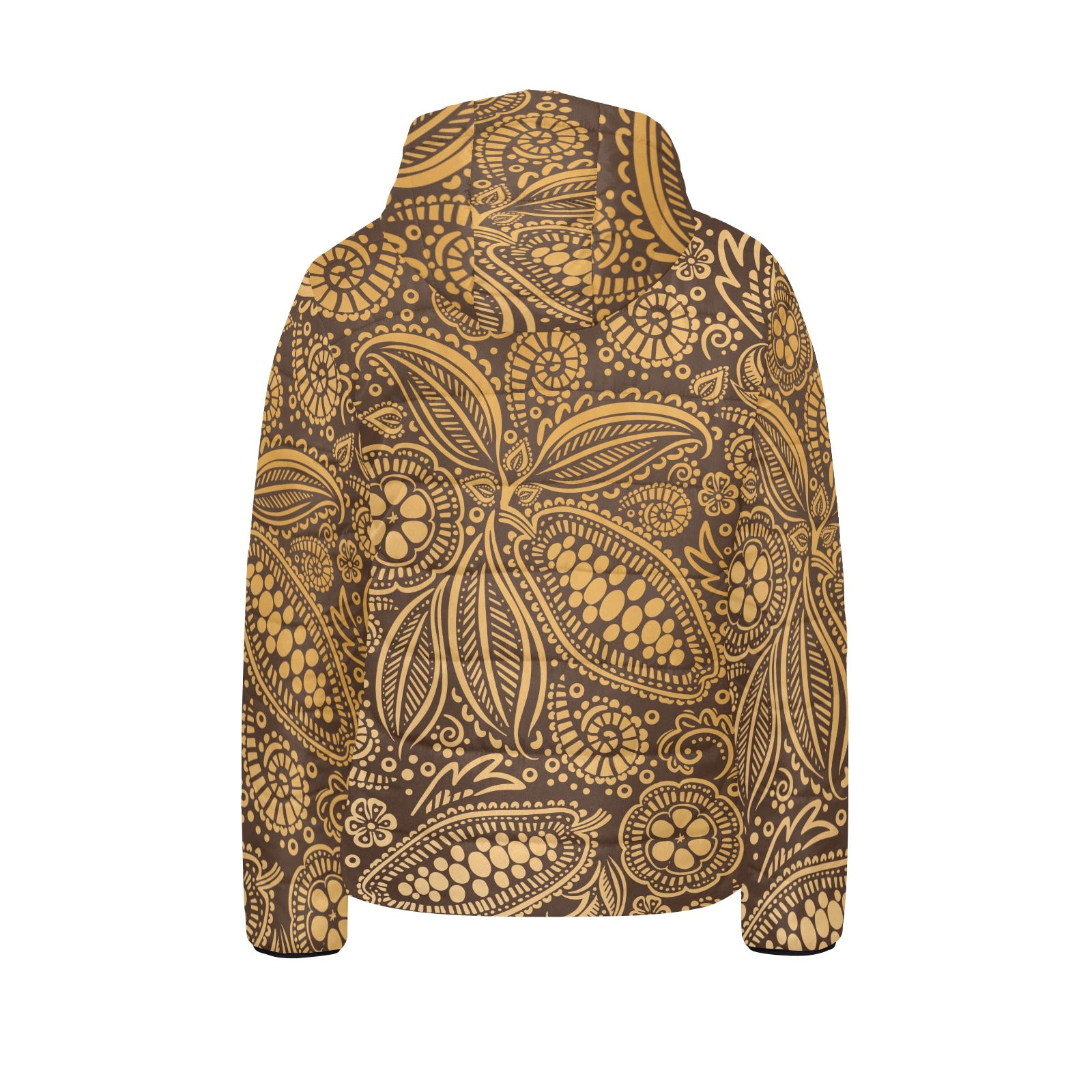 cacao beans tribal polynesian pattern background Kids' Boys' Girls' Padded Hooded Jacket
