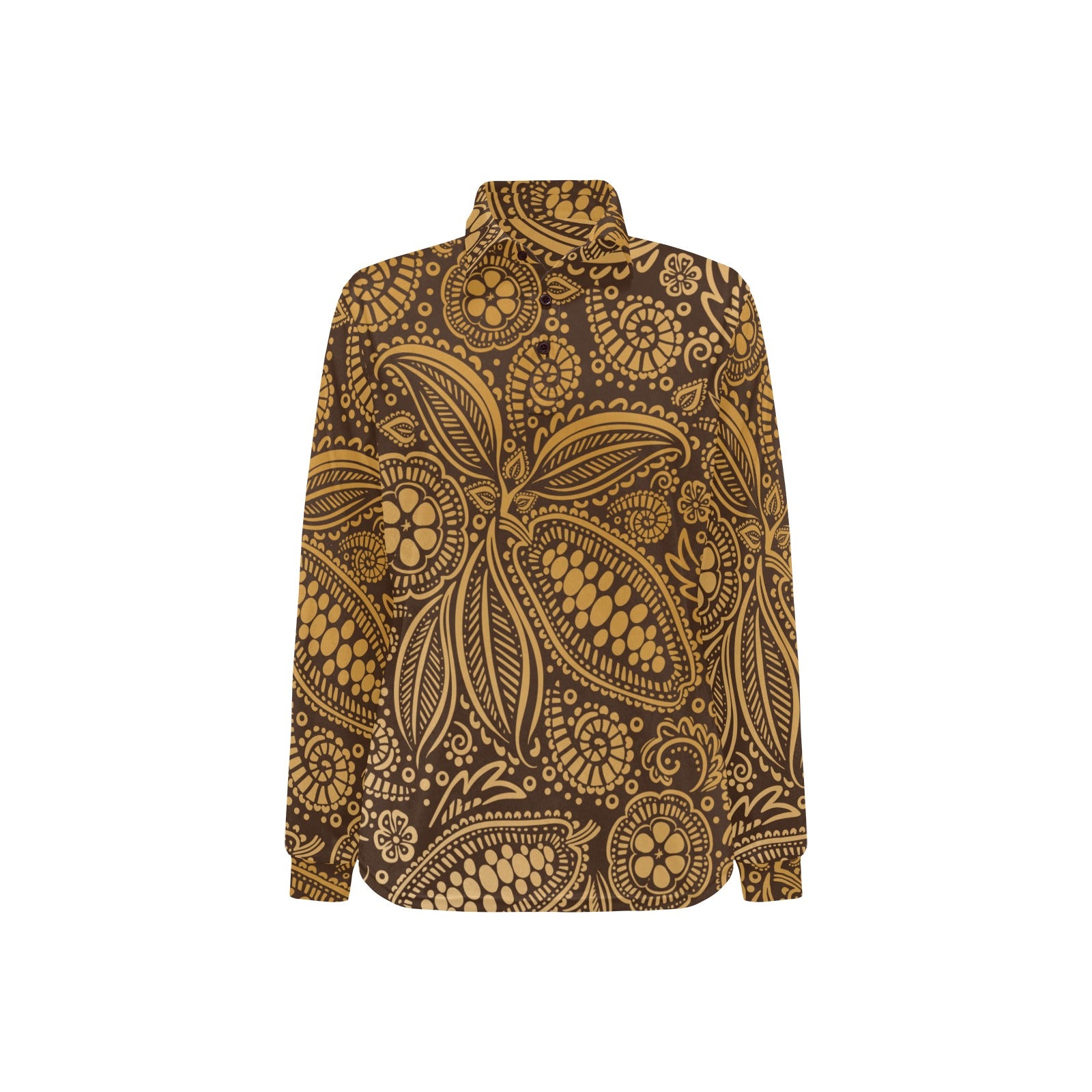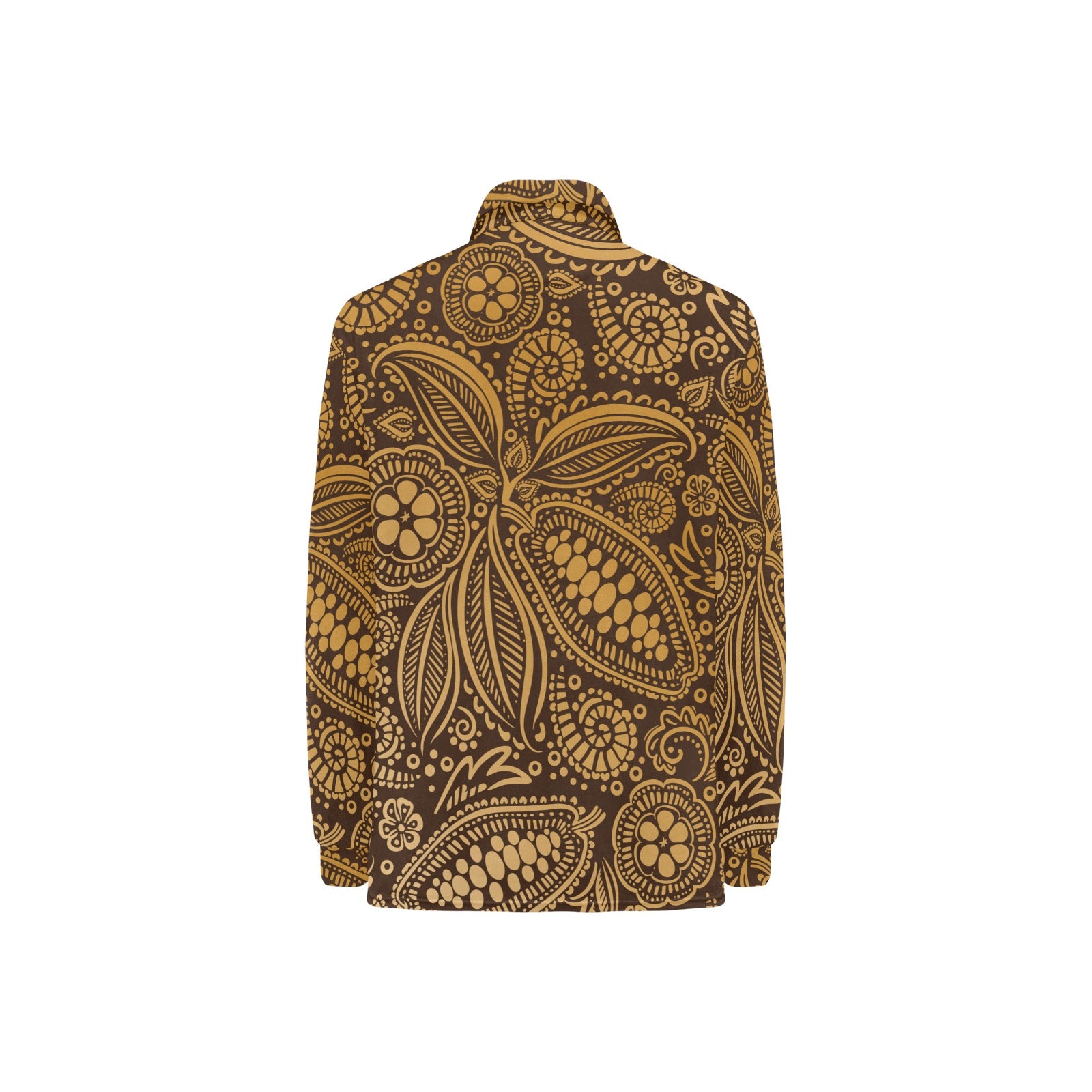 cacao beans tribal polynesian pattern background Women's Long Sleeve Polo Shirt
