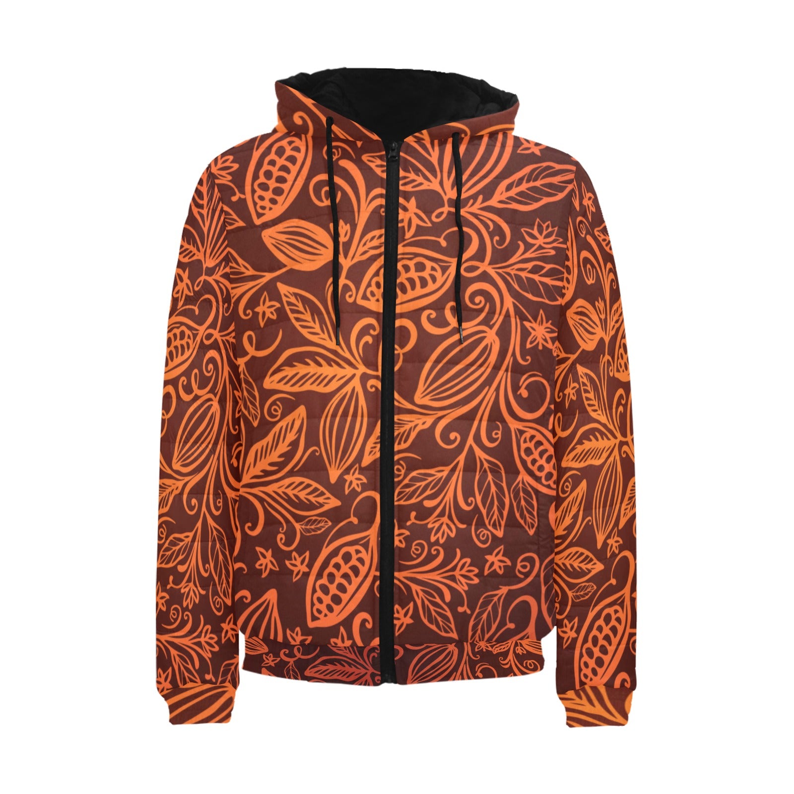 cacao beans tribal polynesian pattern Men's Padded Hooded Jacket