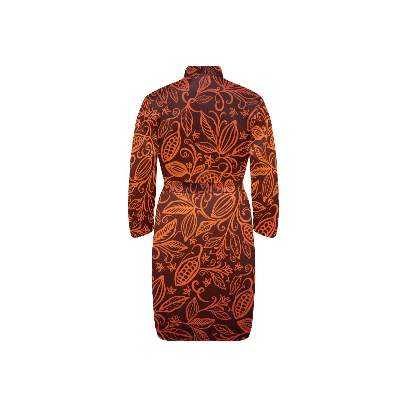 cacao beans tribal polynesian pattern Men's Long Sleeve Belted Night Robe