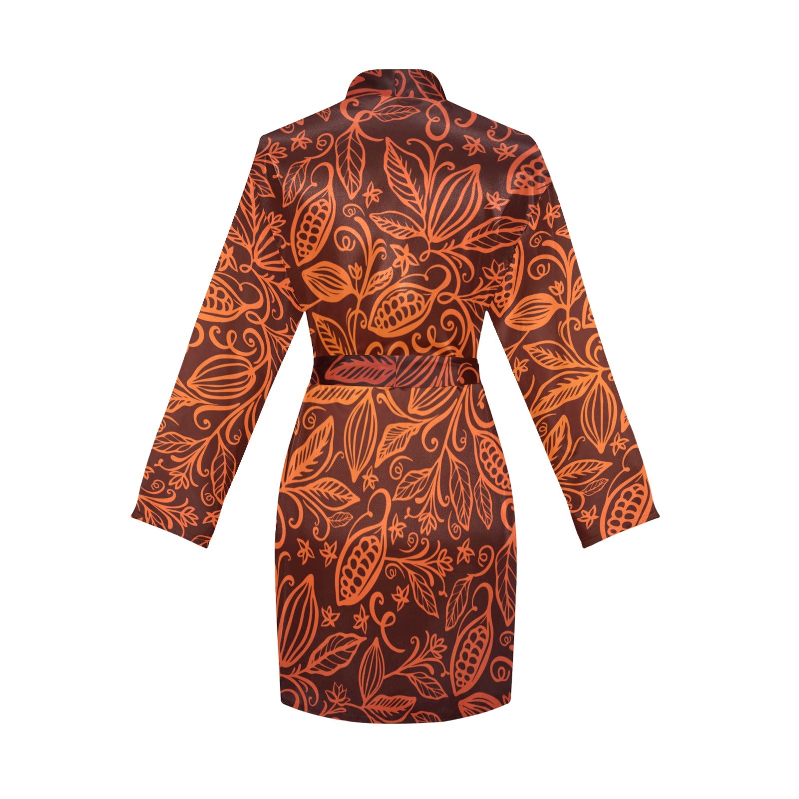 cacao beans tribal polynesian pattern Women's Long Sleeve Belted Night Robe