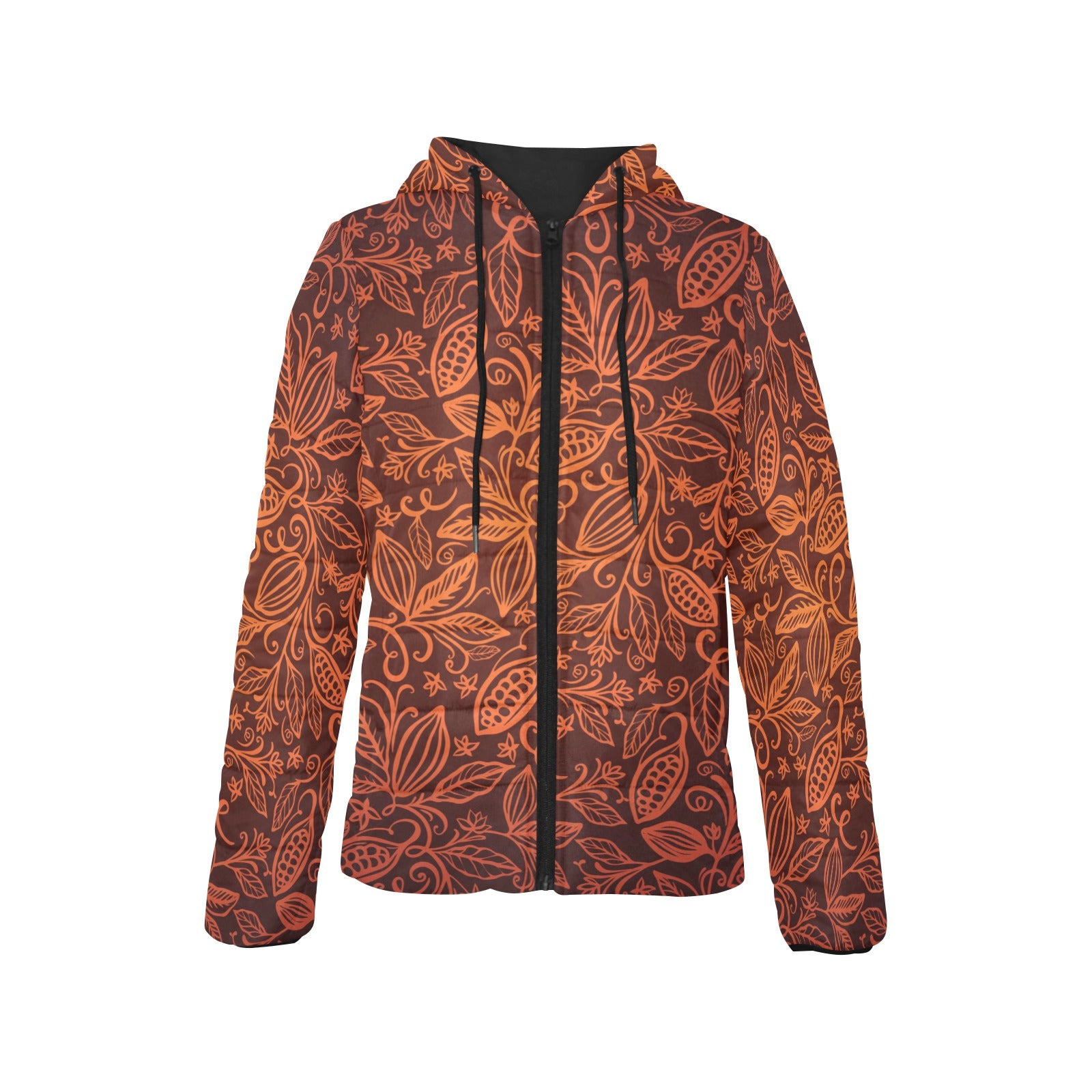 cacao beans tribal polynesian pattern Women's Padded Hooded Jacket