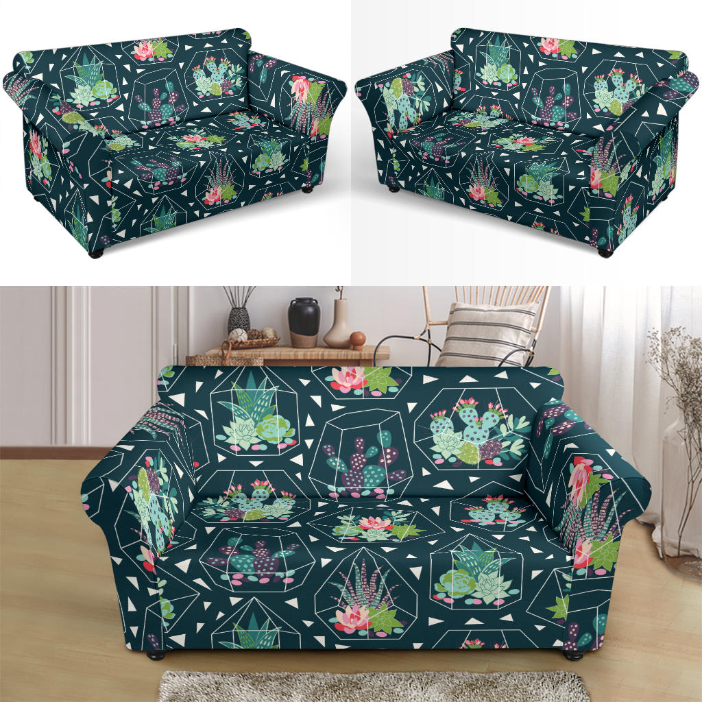 Cactus Glass Terrarium Pattern Loveseat Couch Slipcover