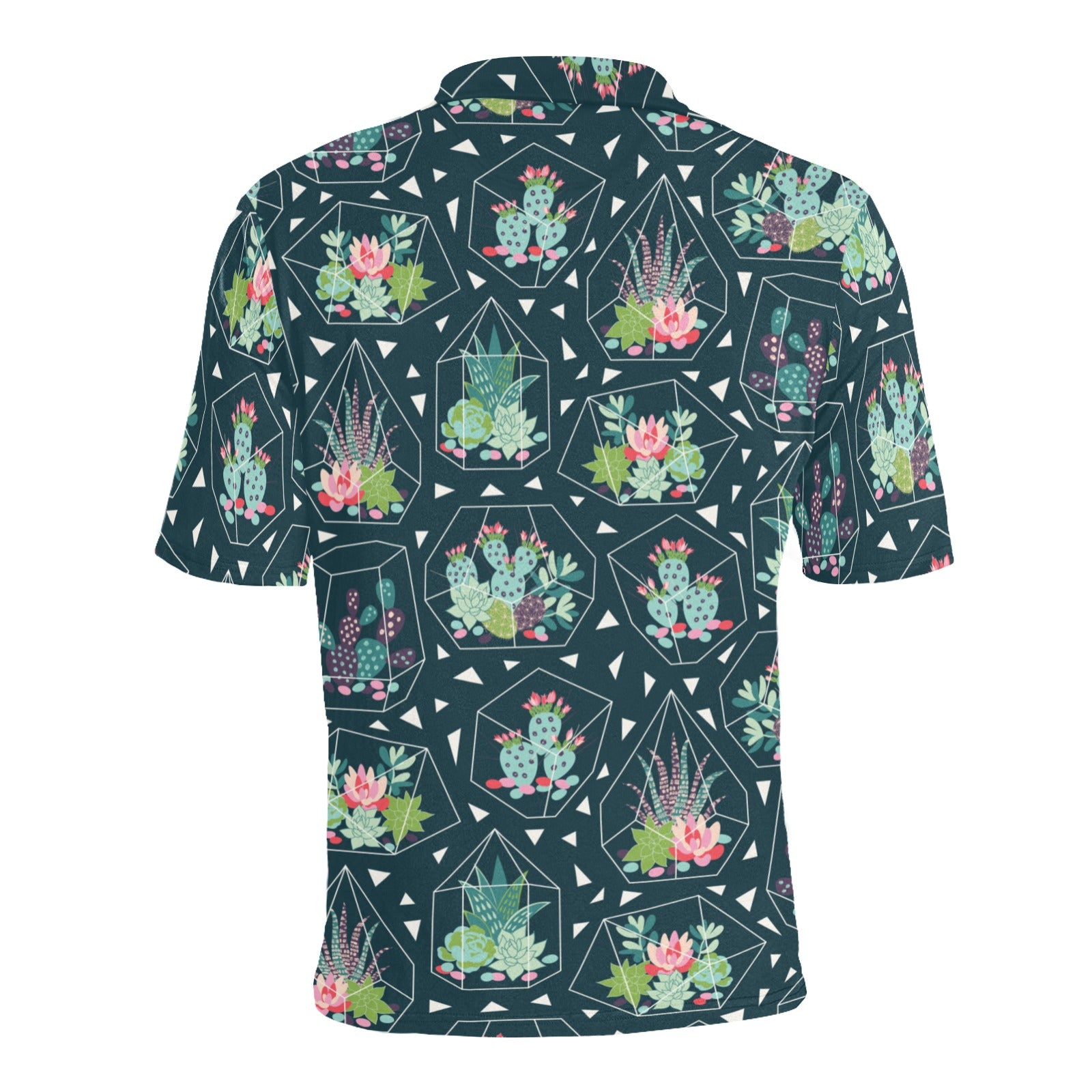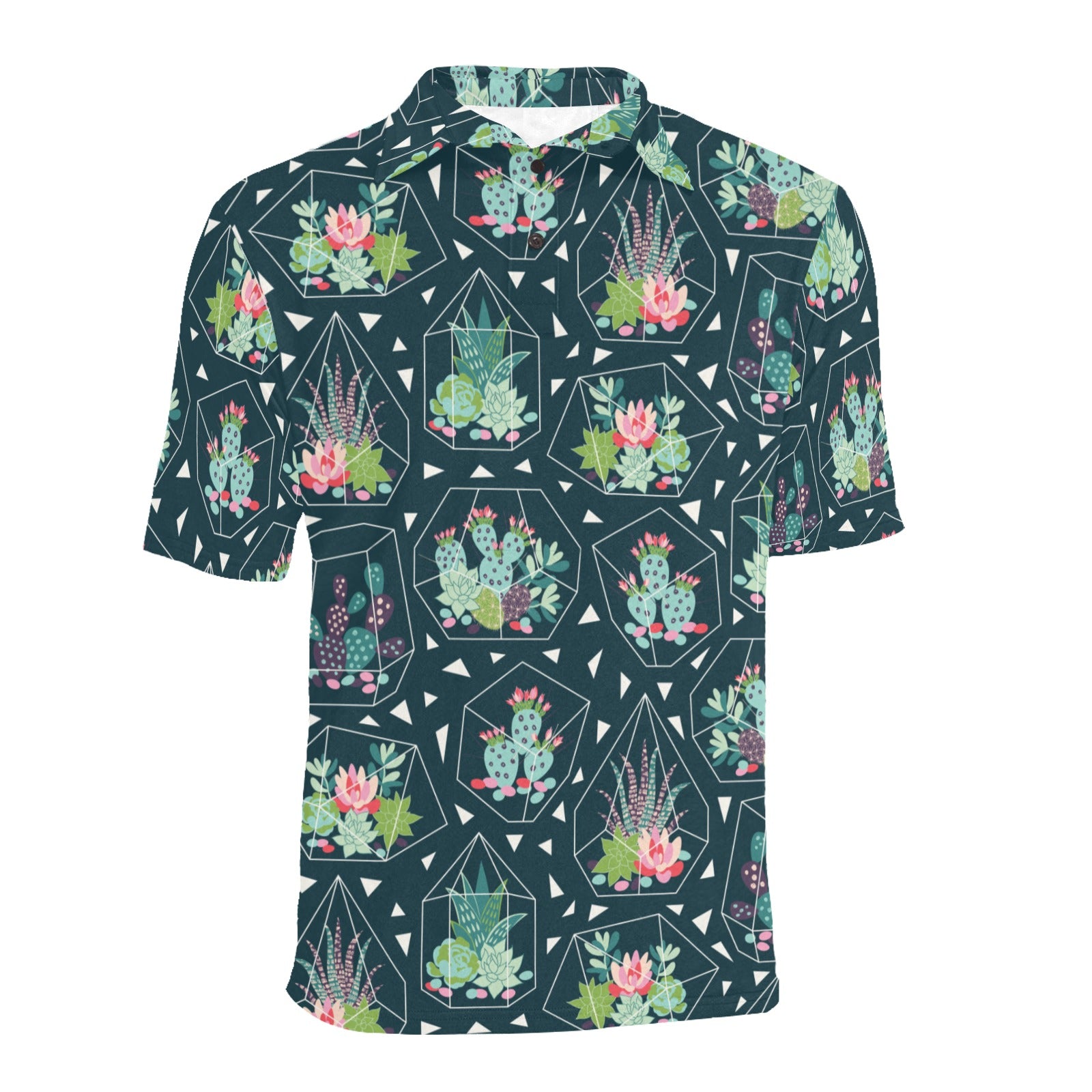 Cactus glass terrarium pattern Men's All Over Print Polo Shirt