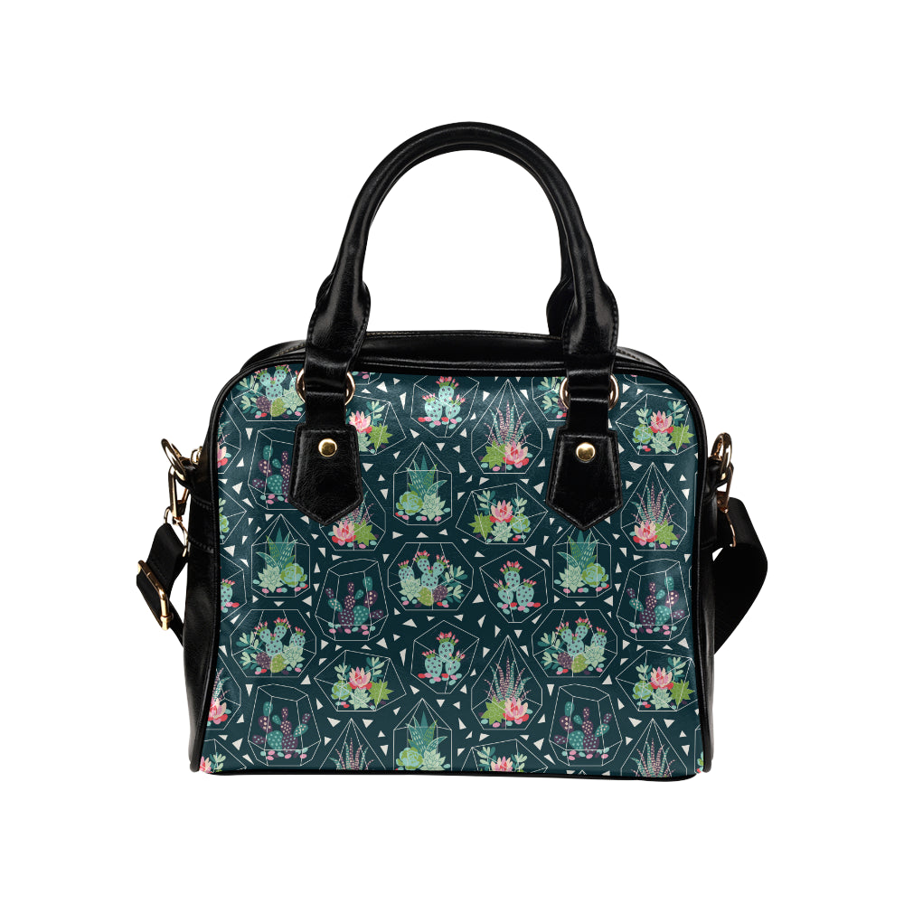 Cactus glass terrarium pattern Shoulder Handbag is a uniqued design and limited item. It made to order, hand printed, and sewn with love in our factory.