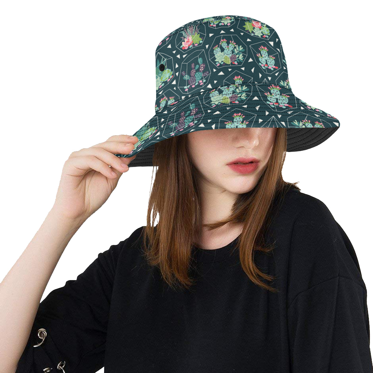 Cactus glass terrarium pattern Unisex Bucket Hat is a uniqued design and limited item. It made to order, hand printed, and sewn with love in our factory.