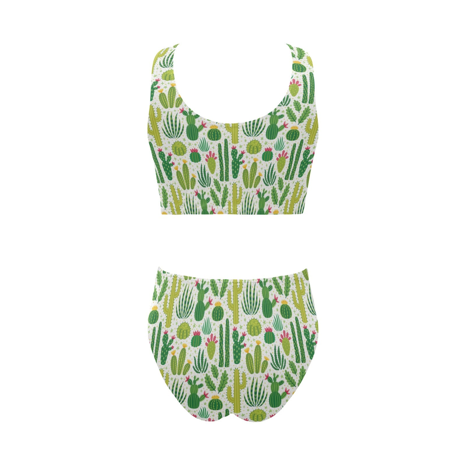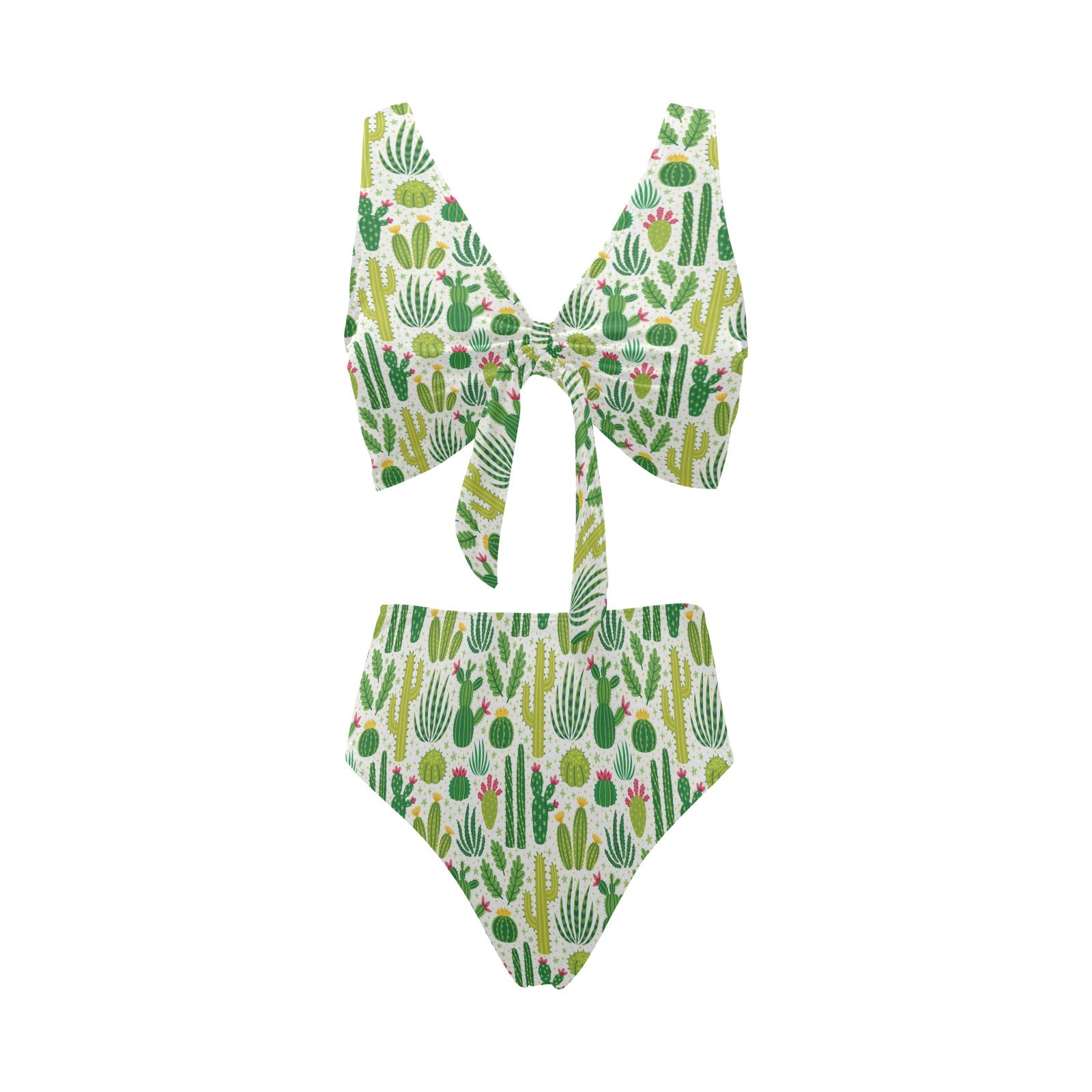 Cactus pattern copy Chest Bowknot High Waisted Bikini Swimsuit