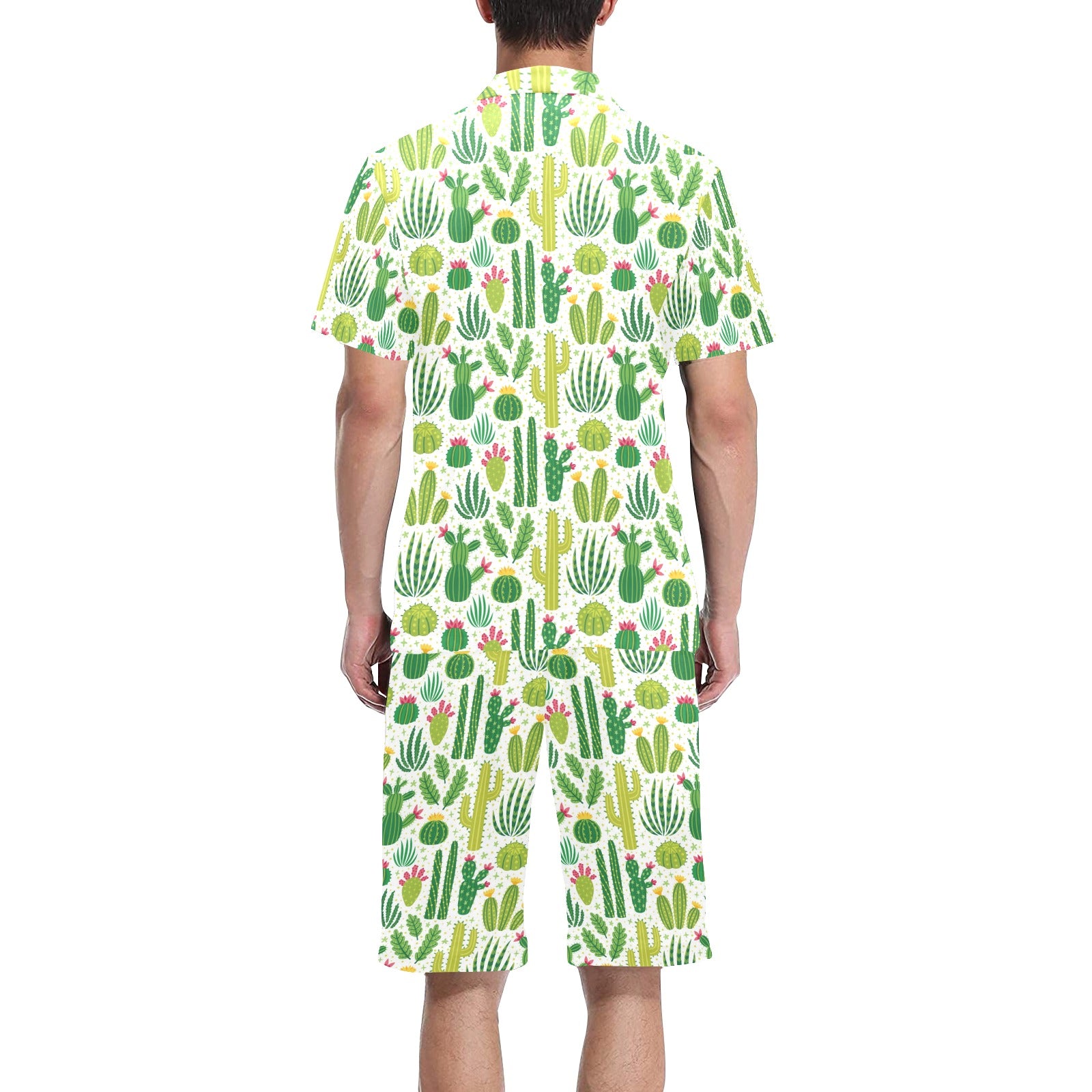 Cactus pattern copy Men's V-Neck Short Pajama Set
