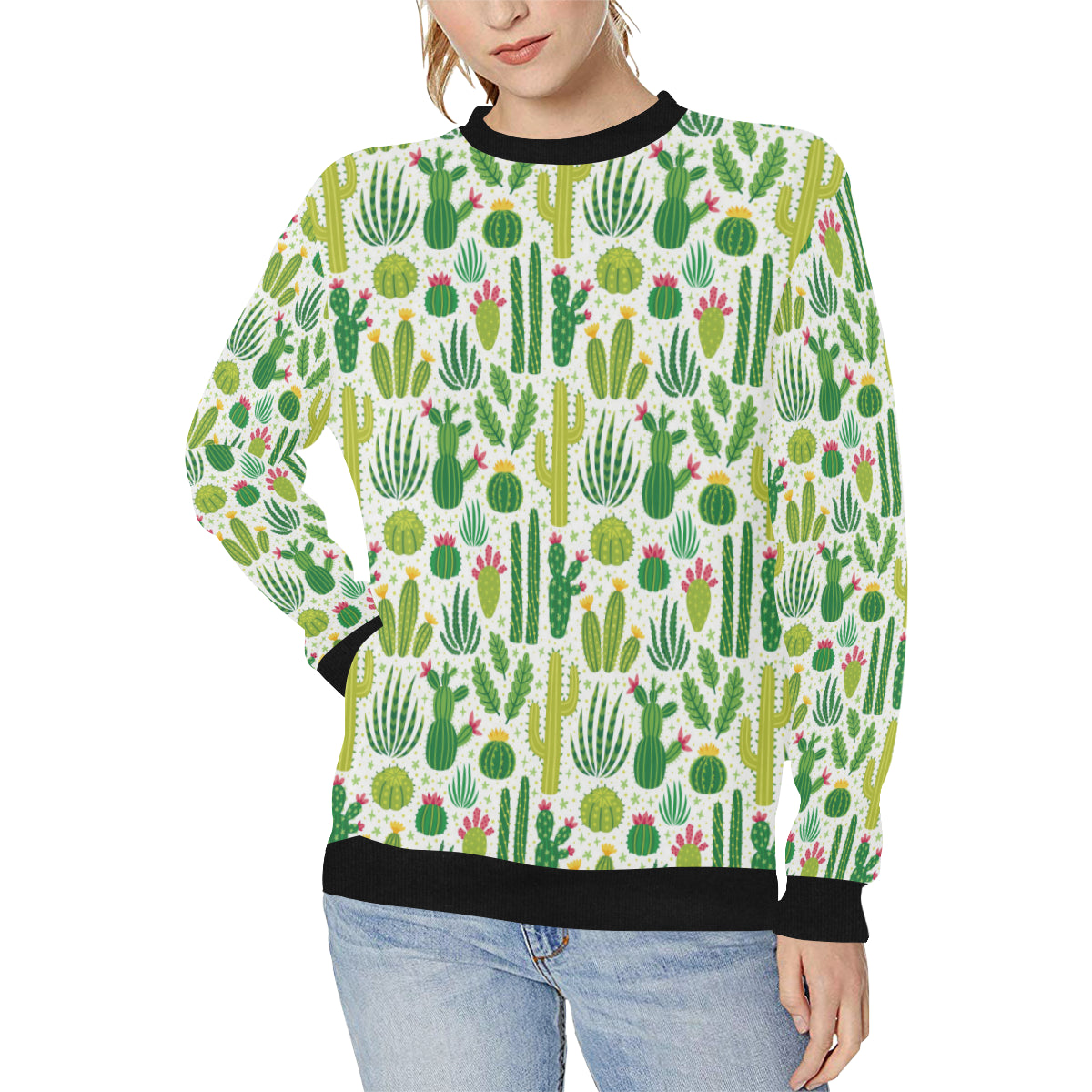 Cactus pattern copy Women's Crew Neck Sweatshirt is a uniqued design and limited item. It made to order, hand printed, and sewn with love in our factory.