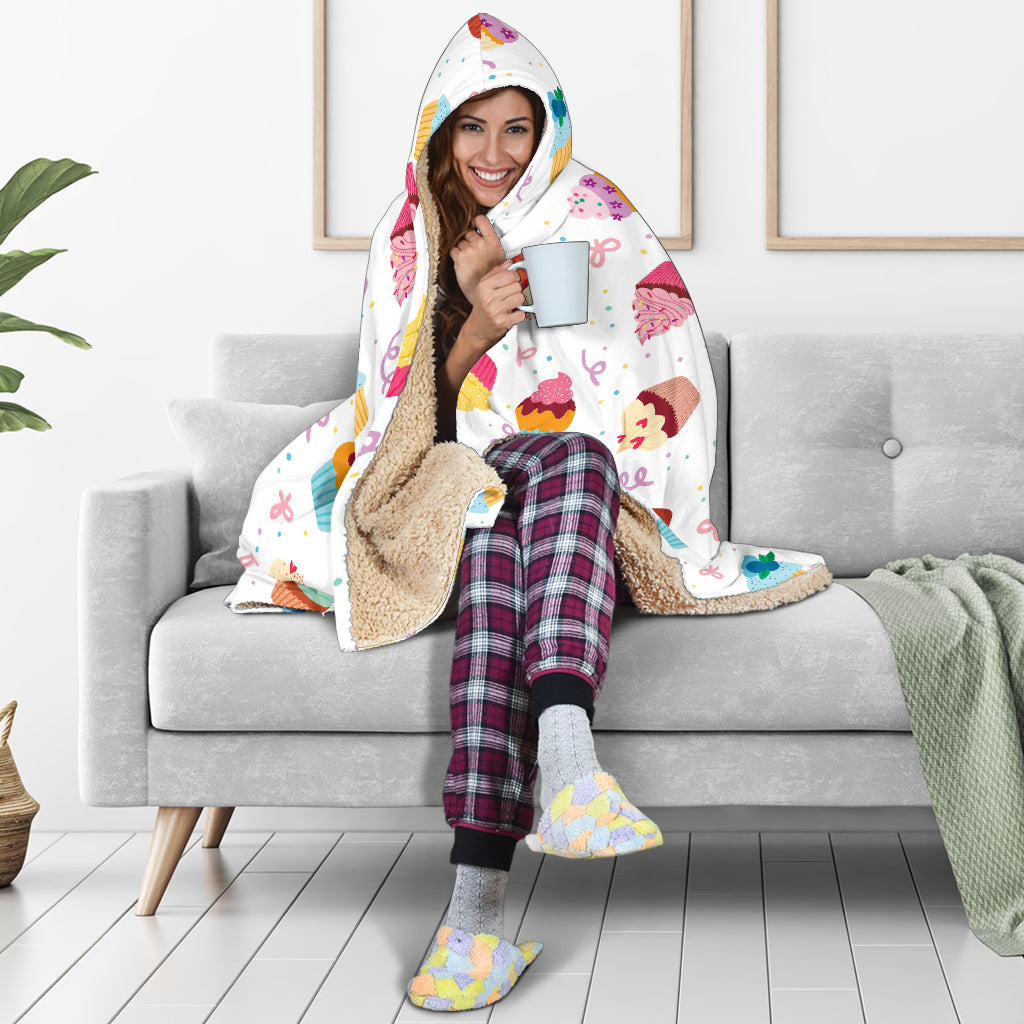 Cake cupcake design pattern Hooded Blanket are custom-made-to-order and handcrafted to the highest quality standards.