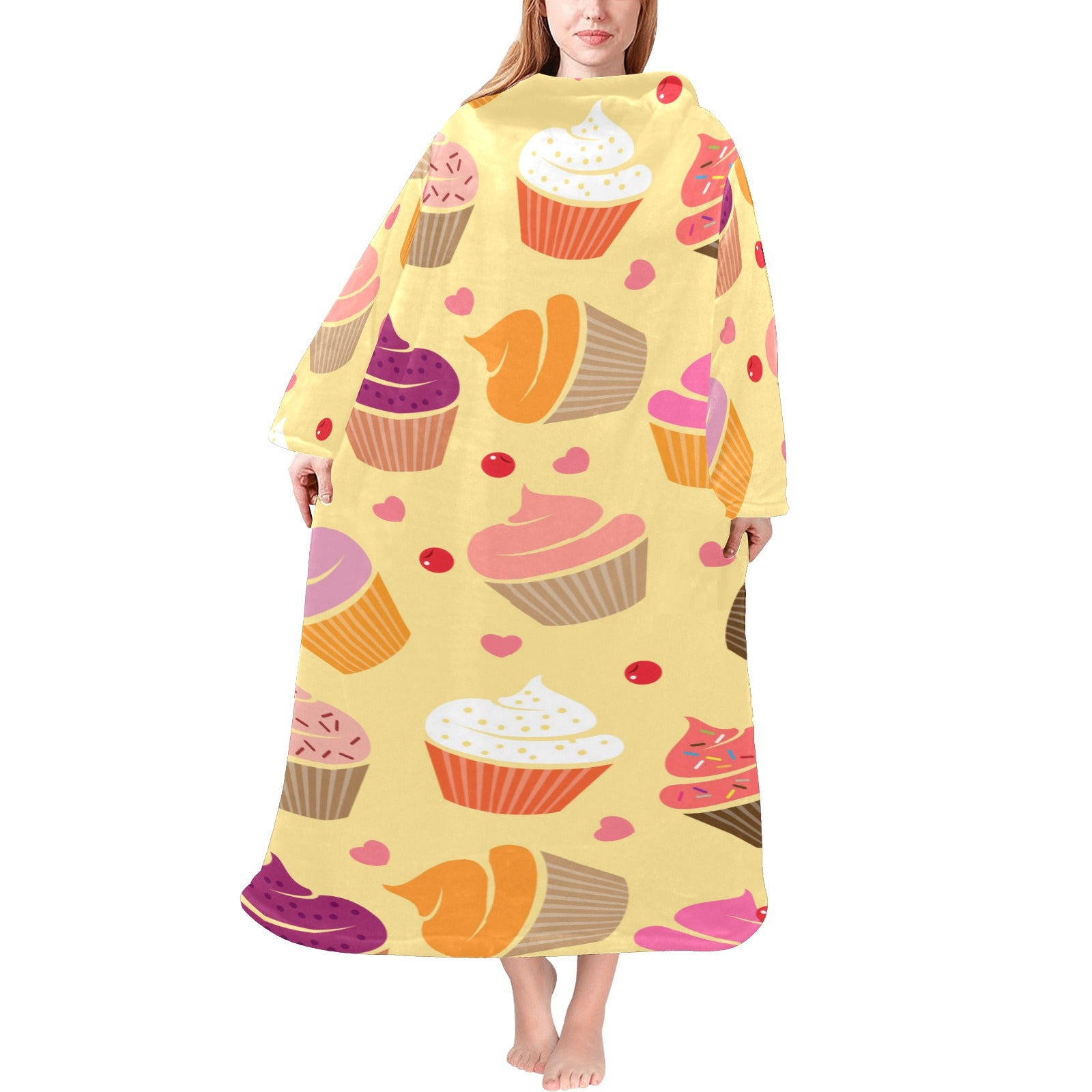 cake cupcake heart cherry pattern Blanket Robe with Sleeves