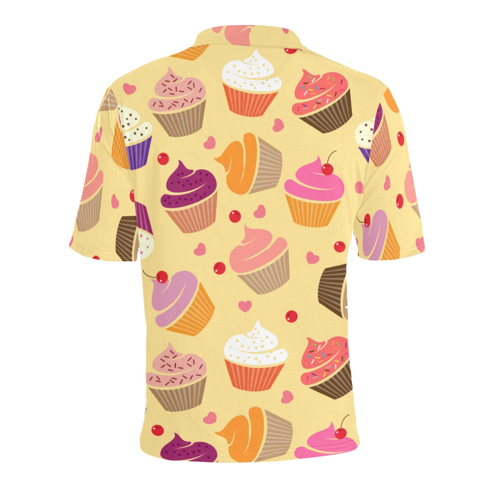 cake cupcake heart cherry pattern Men's All Over Print Polo Shirt