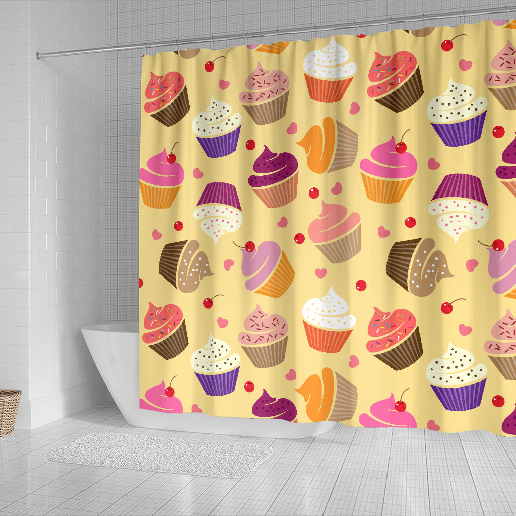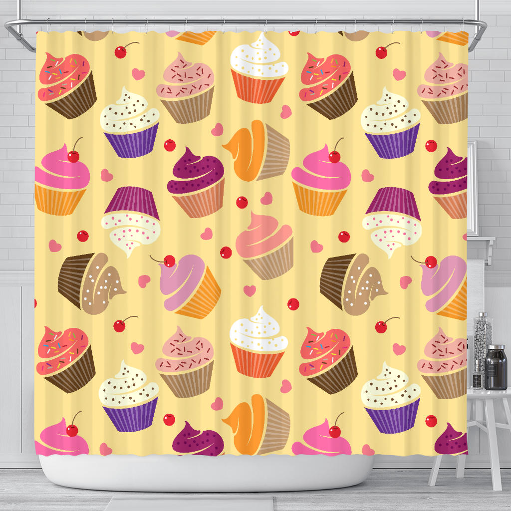Cake Cupcake Heart Cherry Pattern Shower Curtain Fulfilled In US