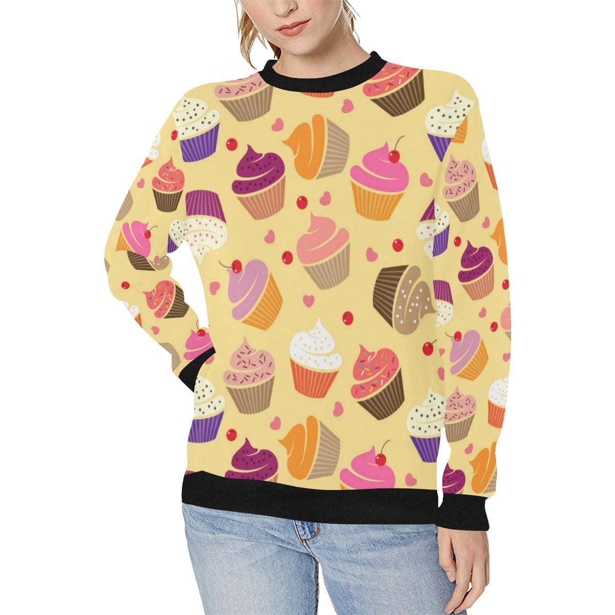 cake cupcake heart cherry pattern Women's Crew Neck Sweatshirt is a uniqued design and limited item. It made to order, hand printed, and sewn with love in our factory.