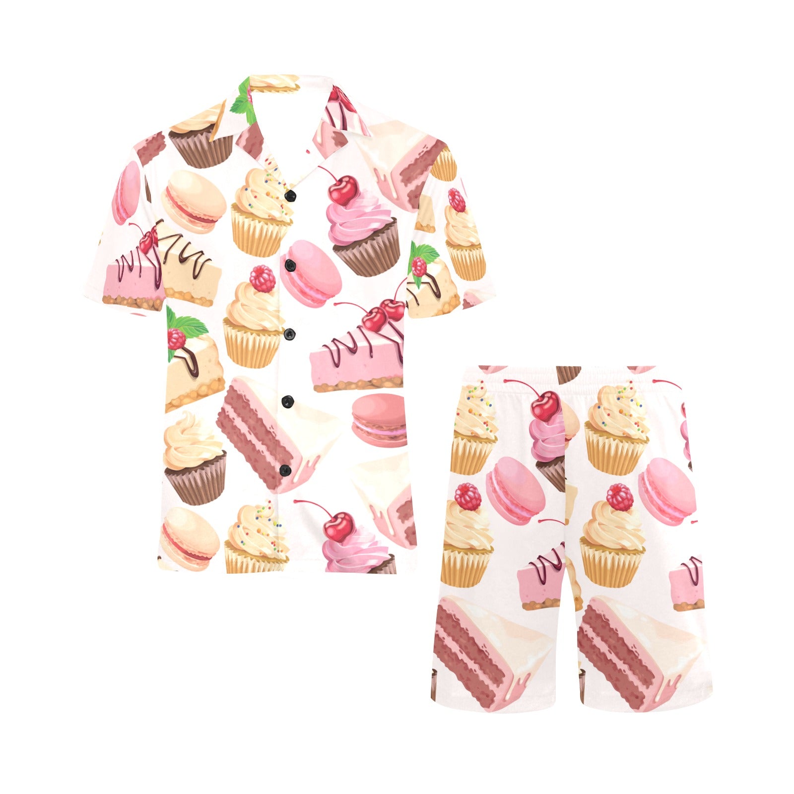 Cake cupcake sweets pattern Men's V-Neck Short Pajama Set