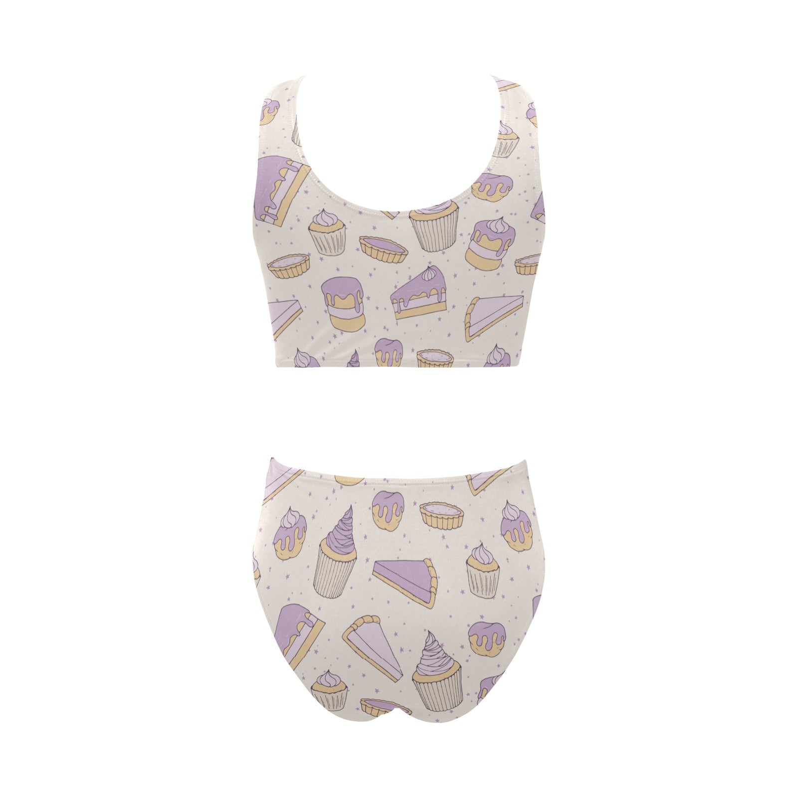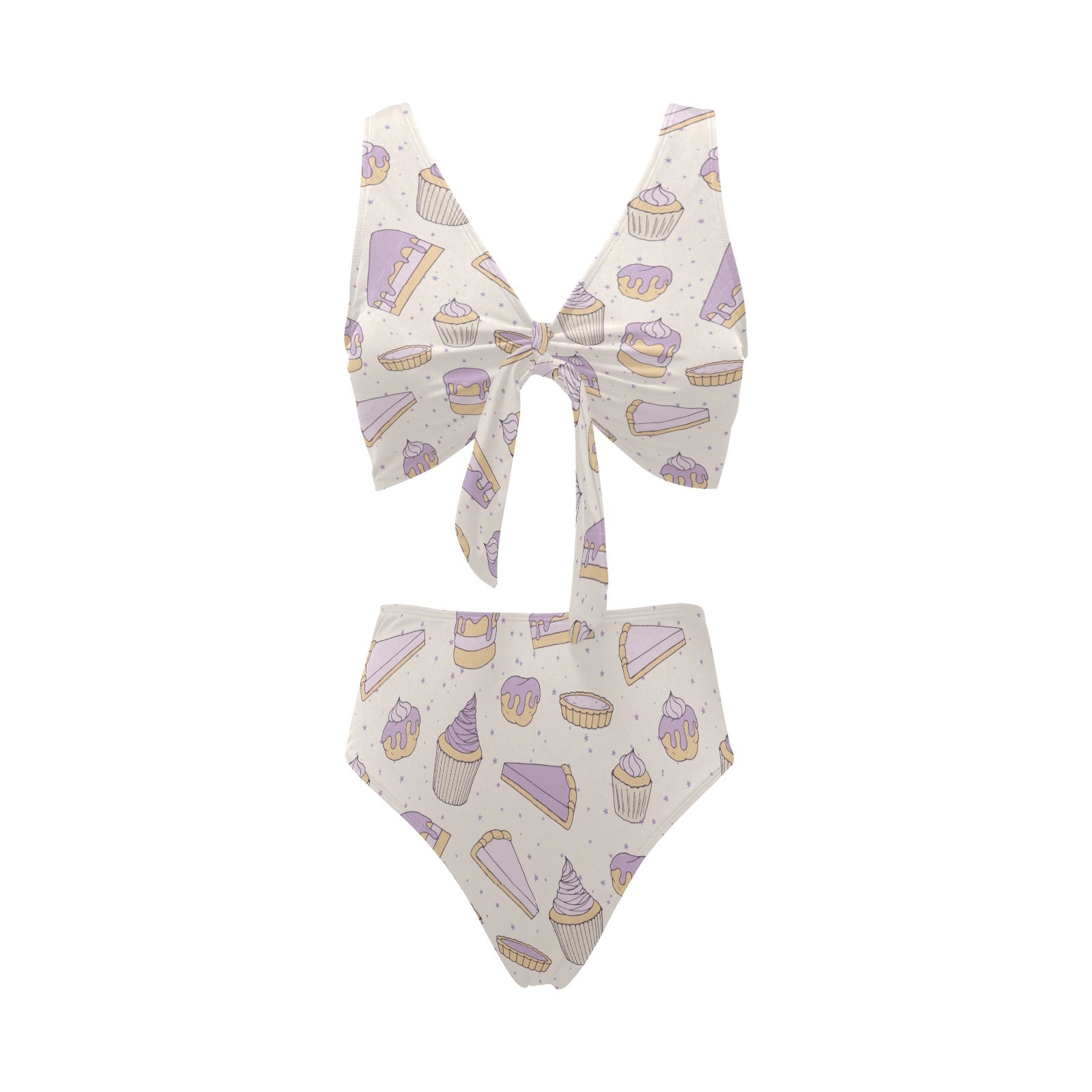 Cakes pies tarts muffins and eclairs purple bluebe Chest Bowknot High Waisted Bikini Swimsuit