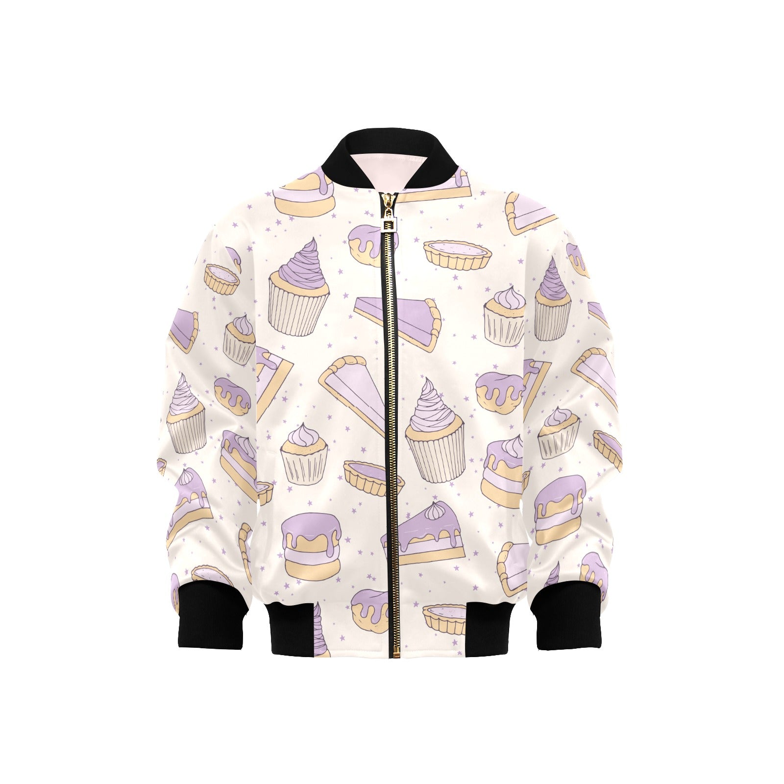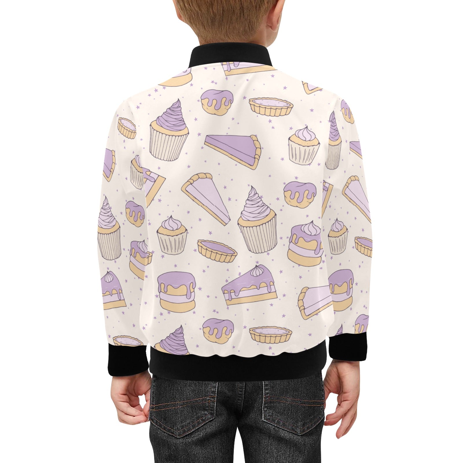 Cakes pies tarts muffins and eclairs purple bluebe Kids' Boys' Girls' Bomber Jacket