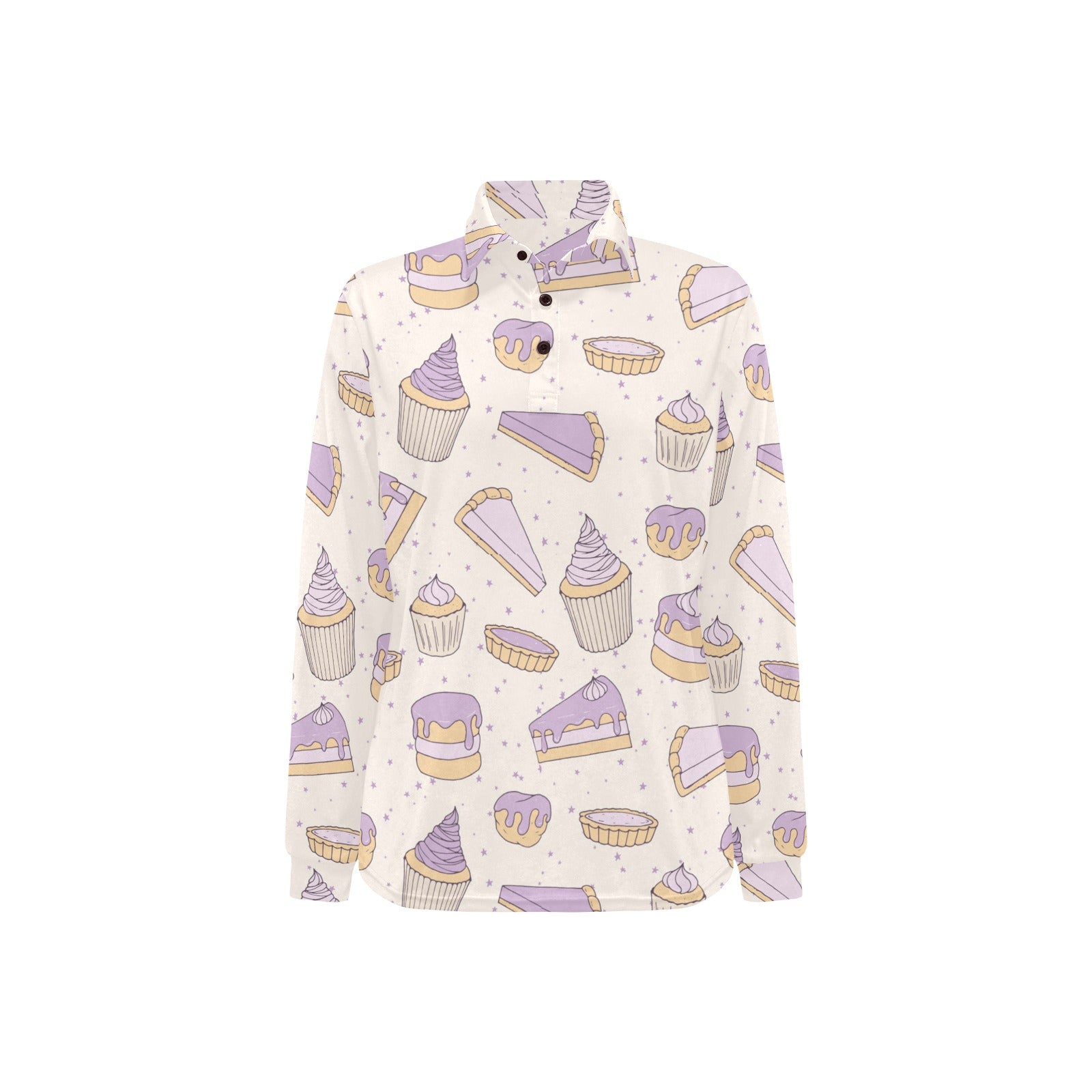 Cakes pies tarts muffins and eclairs purple bluebe Women's Long Sleeve Polo Shirt