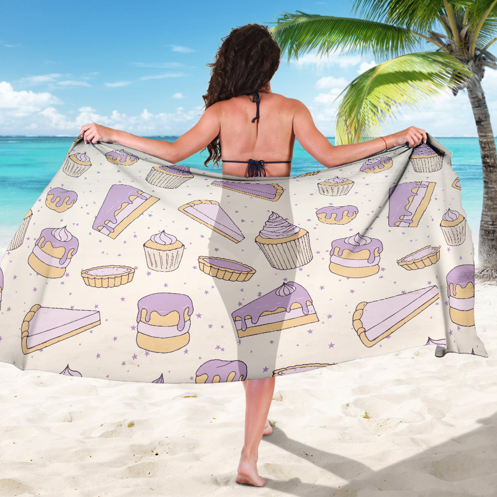Cakes pies tarts muffins and eclairs purple blueberry topping pattern Sarong is a uniqued design and limited item. It made to order, hand printed, and sewn with love in our factory.