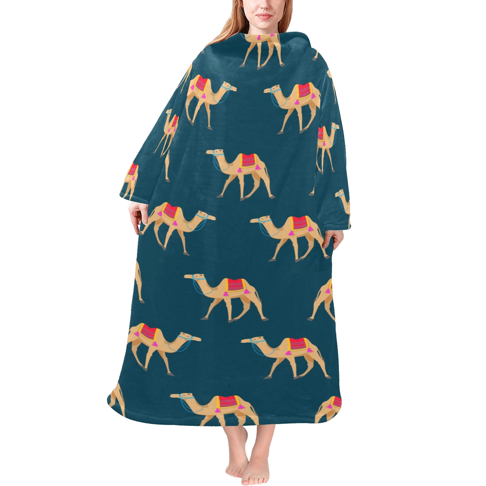 Camel pattern blue blackground Blanket Robe with Sleeves